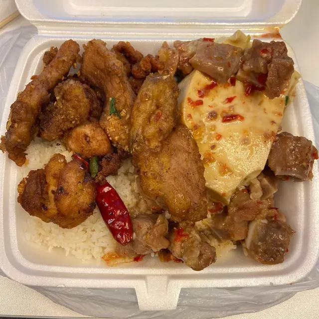 講到灣仔區兩餸飯,你一定無可能唔識<駱克美食>既兩餸飯😜呢間鋪仔細細,未到12點15分已經有一條龍餅係駱克道🤣你會發現佢價錢唔平,但全部排隊都係fans,個個打工仔西裝長裙都會為左佢既兩餸飯而停留🤗⭐佢個餐單好吸引,圖文並茂,不過實際菜式要睇返當日供應!有一D受歡迎既就日日都有,好似肉餅,蒸水蛋,椒鹽豬扒,辣子雞同水煮牛肉呢D。好多食物選擇😆所以飯都會配例湯,唔飲例湯都可以加錢轉凍檸茶或者凍奶茶既飲品👍留意返佢價錢比坊間兩餸飯貴,但無論味道同份量都蒐得住個價錢。佢好食到我公司有差唔多一半人都係食佢既兩餸飯🥰證明真係好好食👍⭐我必食既菜式一定係辣子雞同水煮牛肉,蜜糖薯仔牛柳粒,肉餅蒸水蛋都好好食。佢既蒸水蛋唔係好水,可以用筷子夾起。留意返其實我留意到無論叫三餸定四餸,份量都係差唔多。咁叫三餸會抵D😆不過我成日想食多D唔同款,可以同同事share,好多時候我都會叫四餸,哈哈🥰🤣🤣🤣如果你係附近返工,真係可以做飯堂架🥰…查看更多