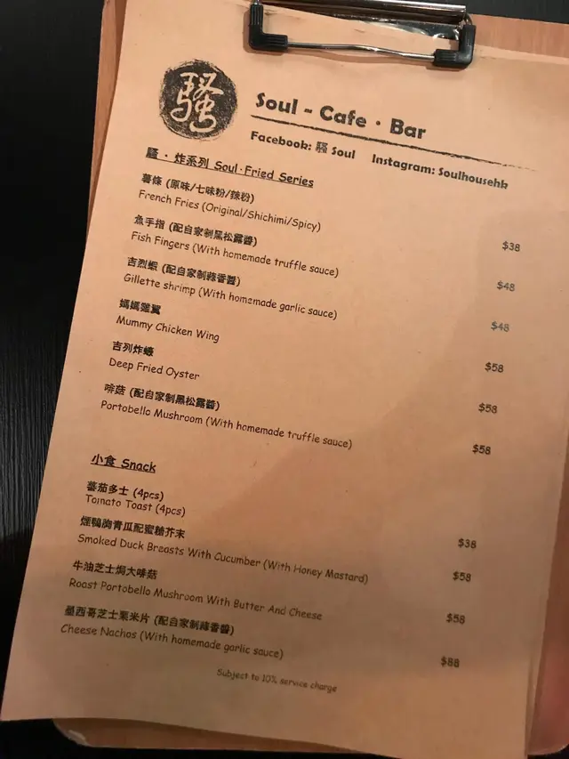 那晚是世界杯決賽,和朋友去了位於號稱九龍區蘭桂坊的諾士佛臺宵夜看球。酒吧叫|騷^Soul,騷不代表發情(或廣東人說的發姣),騷字源自於黑人的騷靈音樂。由於酒吧有大熒幕看足球,又是世杯決賽,會員就租用場地作會員活動,大伙也順便看決賽。我們來到是已經不早,推開門口的白色小門,室內空間約 600-700 呎,只有10多張檯,近 40 個座位,那時已坐滿大半,燈光柔和但稍嫌昏暗,裝潢格調像酒吧和咖啡廳的混合風,牆壁貼了不少旅遊明信片,還有很多紙牌遊戲,有種 Chilly 的窩居溫馨感。那晚由於是世界杯日子,客人多了數倍,餐廳也請了 "外援"。只看兩位女生在油煙濃厚的廚房忙個不停,平時很少見她們,應該是老板的 "好朋友",才會拋下身段落場幫忙。但我們的位置靠近廚房,很易聞到油煙味。決賽的兩隊可算強弱分明。克羅地亞雖然實力稍遜,而且體力儲備不足(球員平均年齡更大,並且三戰均需打至加時),面對以待勞的法國,不久就落後捱打,但到最後也不放棄,拚命進攻搶球。克羅亞這國家也算悲情,近年內亂戰火頻仍,近月足總亦被捲入貪污醜聞,但這次小組賽三戰全勝,包括擊敗美斯坐陣的阿根廷,在加時拖垮東道主俄羅斯,又逆轉世杯前冠軍英格蘭,已算奇蹟。酒吧全場都鋤強扶弱,一面倒支持克羅地亞,法國有人犯規或踢點球就狂噓,克羅地亞進入禁區就肉緊大叫射門。一路走來,在決賽天時地利人和皆不如人之下,力戰法國而敗,可說非戰之罪,雖敗猶榮,也堪值國足愧疚。餐廳主打酒類,食物選擇不算多,但每款份量充足,烹飪烘煮細節有心思,而且服務周到,在球賽期間還不斷添加任食小食。黑椒炸原味薯條:厚切薯條,全部剛剛炸起,熱氣撲鼻,口感鬆脆香口。墨西哥芝士粟米片:在鹹鹹辣辣粟米片上,淋上芝士烘焗,讓濃郁的芝士溶化在粟米片上 (可惜應該是用芝士片,因為沒有拉絲效果),上枱時熱辣辣, 配上自製肉醬茄粒蒜蓉醬,令粟米片更惹味,又脆而不乾,佐酒一流。…查看更多
