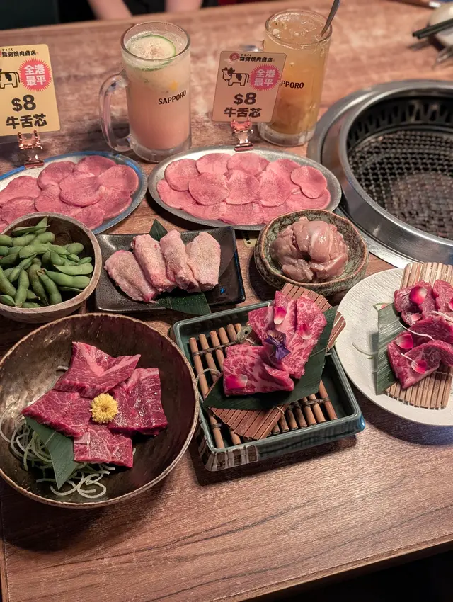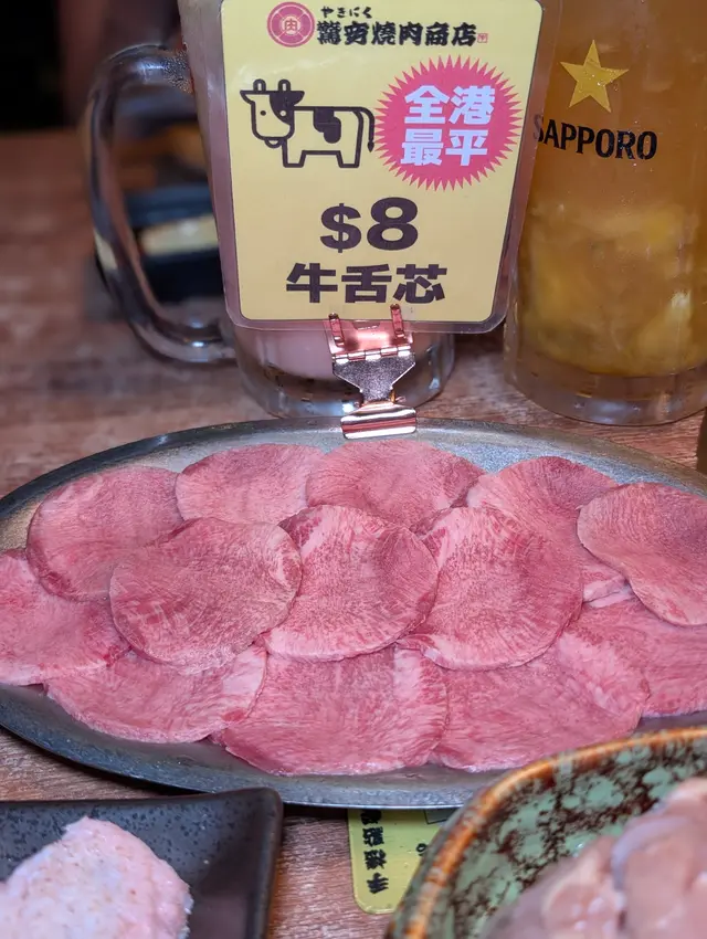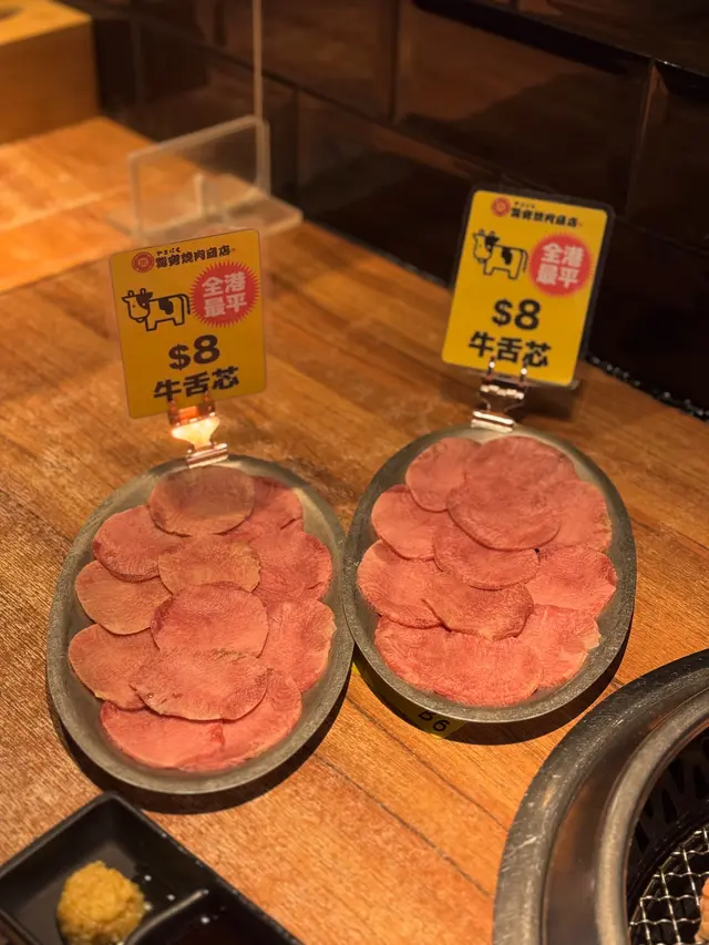 【OP百大人氣燒肉|全港最平 $8 牛舌🥩🔥】又到糧尾了🥹今日挑戰8蚊食燒肉🥩😏😏就係呢間尖沙咀驚安燒肉商店!佢哋榮獲OP百大人氣商店,除咗有多款特色燒肉配搭外,價錢亦好抵食,生啤仲有買一送一!!💞唯一有啲可惜嘅係,本來想試佢地招牌菜蟹黃飯,不過咁啱無貨🥺🔷 全港最平牛舌 $8⭐️每人限叫一碟!!一碟睇落都有十幾塊,肉質爽口,相當抵食😍🔶 澳洲和牛友三角 $118 ⭐️油花豐富但比一般和牛更有嚼勁,肉質嫩滑,食落入口即化🤩食落帶有甜味,啱哂鐘意瘦肉口感嘅燒肉愛好者試😆🔷 極黑和牛牛小排 $138 肉嫩口感彈牙!我自己就最鐘意加少少鹽調味,食落肉味更濃🤩🔶 活蜆野菜壽喜燒鍋口(限量) $88限量供應!!天涼最啱食鍋物😝鍋內有好多新鮮嘅蜆、仲有野菜、金菇、豆腐等,好清新😝加埋壽喜燒湯底咸咸甜甜,口味好濃郁😋🔷日式味噌黑豚五花 $68豚肉油花濃郁,搭配味噌口感上有啲甜同膩~😛🔶 海虎蝦(2隻) $88⭐️好貼心!隻蝦既保留蝦頭蝦尾,但中間嘅部分已經起咗殼,食落勁方便,彈牙又多汁,好鮮甜😚🦐🦐🔷 雞皮餃子 $48作為餃子愛好者一定要試雞皮餃子!用雞皮作外皮,外皮酥脆,內餡嫩滑,食落好爽脆😝🔶Sapporo生啤 $48⭐️嘩嘩嘩 抵到爛!做緊買一送一優惠❣️❣️ $48就有兩杯🍻燒肉一定要配啤酒Cheers🍻🍻🔷焦糖菠蘿乳酸 $38⭐️推薦飲品!成串菠蘿一齊上,飲落酸酸甜甜,減膩一流!🔶脆脆豆腐雪糕 $18 ⭐️豆腐味好香濃!雪糕上面仲加咗粟米片脆脆,又凍又脆,感覺好特別😝📍:驚安燒肉商店 (尖沙咀)尖沙咀金馬倫道48號中國保險大廈3樓C號舖#8蚊牛舌#蟹黃飯#燒肉#尖沙咀美食#香港燒肉#香港烤肉#香港日本菜 #香港日本燒#日本燒肉#驚安燒肉商店#尖沙咀燒肉#尖沙咀日本菜#香港美食…查看更多