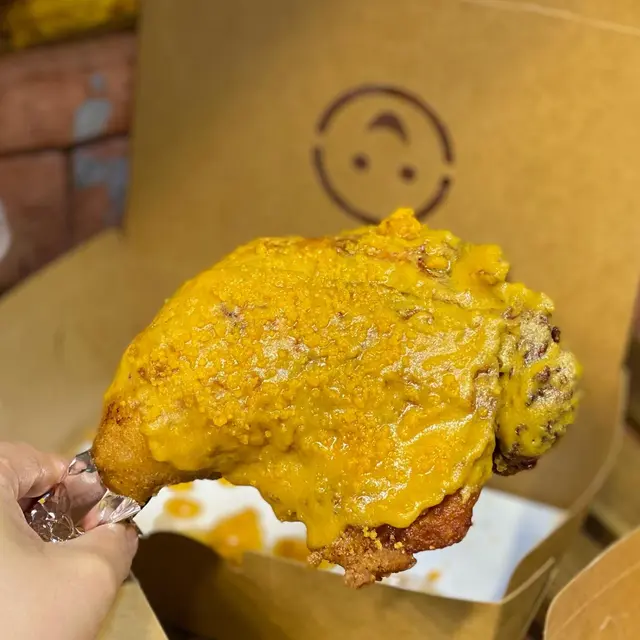 喺附近食完嘢,經過呢邊比佢隻巨髀相吸引咗過去,決定買返隻雞髀返屋企睇波食都好喎🤪同朋友一人揀咗一款雞髀,本身我哋想揀巨髀,可惜冇晒,唯有揀普通髀,普通髀都好大隻,巨髀咪不得了🤤黄金髀(鹹蛋黃醬) $40即叫即炸,等一陣就有,一拎上手,見到啲鹹蛋黃醬鋪晒喺面,勁邪惡啊😍即刻忍唔住影返幾張相🤣雞髀勁大隻,揸住喺手,好有份量,雞肉入口嫩滑勁juicy,配埋個鹹蛋黃醬真係不得了🤭經典髀(自家製椒鹽) $35面頭加咗啲自家製椒鹽粉,香味濃郁,拎到返屋企都仲係脆卜卜,同樣雞肉入口嫩滑,一啲都唔乾身火焰花枝丸 $39|火焰魷魚鬚 $41口痕痕仲叫多兩款小食😆兩款都叫咗麻辣味,入口又唔會過辣,不過好香麻香味😍魷魚鬚炸漿夠薄,食落唔會成口粉,脆嫩惹味😋買任何一款食物,再買飲品可以減$10巨峰爆爆珠 $30巨峰提子汁配埋爽爆粒粒爆爆珠,鮮甜開胃又夠氣TEA芒芝黃金沙 $45用咗成個呂宋芒整成,好香甜,沙冰幼滑,唔會飲到頭痛果隻,超級解渴估唔到除咗小食唔錯,連飲品都咁得😋…查看更多