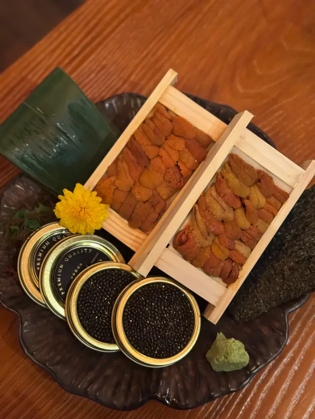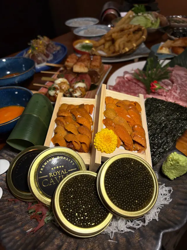 老友果然識飲識食, 他訂了位放工後一齊去飲清酒, 食日本餐, [高知城] 位於銅鑼灣 駱克駅, 門面日式裝修, 好吸引.面積夠大, 有酒吧, 店員招呼不錯, 我們坐下即送上 綠茶.牆上有介紹食品, 及 日本清酒放題兩小時, 可以享用多款清酒, 好正 !大家決定開心飲, 朋友先取 日本北鹿出品的純米吟釀北秋田, 帶濃郁水果香. 餐牌食物選擇多, 有送酒小食, 串燒, 刺身, 壽司, 料理. 點餐無難度, 我們檯上這推廣牌非常搶眼......北海道原板海膽配鱘龍魚子醬. 即落單 !!服務員送上 北海道 原板海膽配鱘龍魚子醬, 令大家即時眼金金, 每人一板 海膽, 金黃色好鮮明, 鱘龍魚子醬 像珍珠般名貴, 圓潤飽滿, 細膩光滑, 質素非常好,把海膽及鱘龍魚子醬 放進紫菜上, 卷起來, 送入口, 好吃得飄飄然, 真回味
