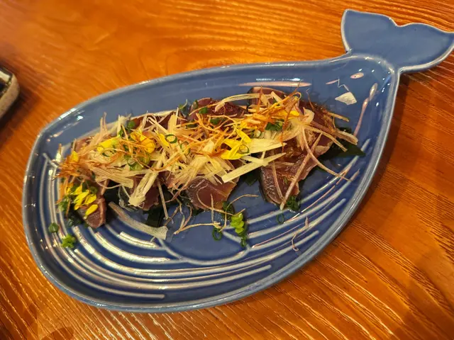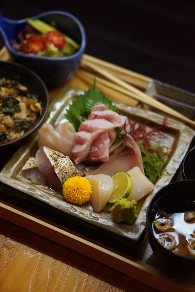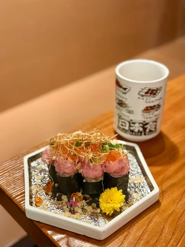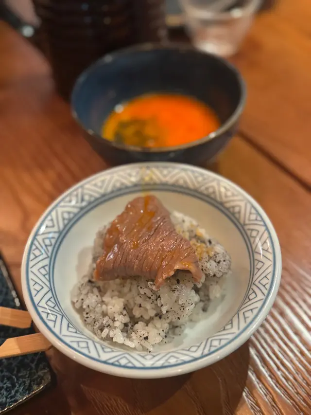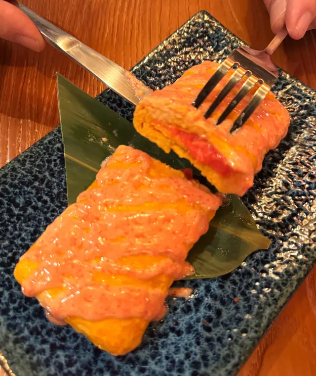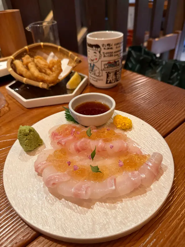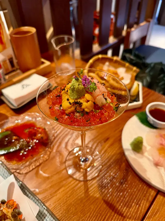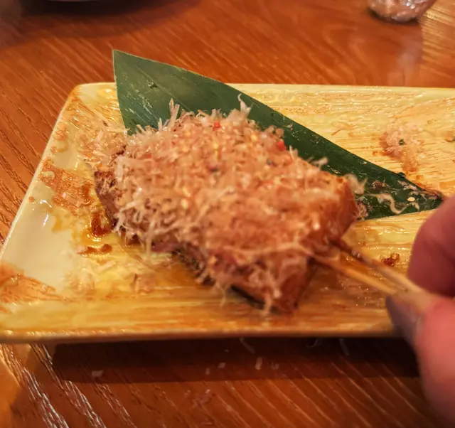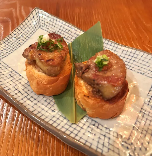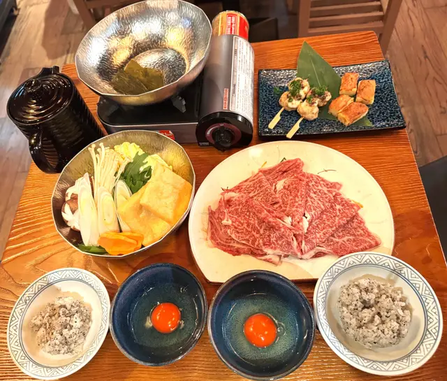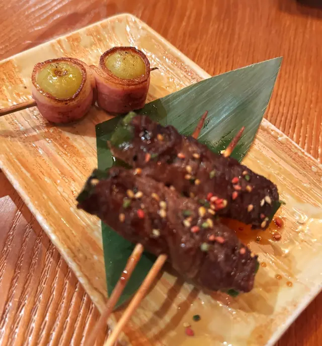 天狗天婦羅 (九肚魚) 炸得香脆, 魚肉品質滑溜, 保持水份.佐酒一流.鰹魚半烤燒配洋蔥汁, 高知縣名菜, 鰹魚經煙燻, 口感比較紮實, 魚味濃郁. 伴上洋蔥汁, 吃得出眾.接著服務員送上 燒物食材 給我們過目, 真窩心.師傅燒物期間, 大家又來一杯 純米大吟釀 越後櫻 , 入口柔滑醇厚. 燒物燒後即熱騰騰送到. 串燒秋葵, 青椒仔, 口感清翠, 有木魚絲伴食, 味道更香. 煙肉波子青提, 選材非常好, 波子青提清甜加煙肉香, 超級正. 秋葵和牛肉卷, 薄薄的和牛肉, 包上秋葵, 口感無得輸.自家製免治雞肉蓋, 圓圓的免治雞肉蓋藏上流心蛋, 吃得美妙又好食. 京都絹豆腐, 外皮燒到卜卜脆, 內裏保留豆腐的嫩滑口感, 令人回味. 山楂蓉伴香煎鵝肝吐司, 好像西式小食, 鵝肝煎得香口放在脆卜卜多士上, 加上山楂蓉, 口感有層次, 食得滋味. 慢煮鴨胸伴醬油脆脆 慢煮鴨胸切成一片片, 肉質嫩滑, 夾上醬油脆脆更添加味蕾. 特別試配 京都 匠 山田錦純米大吟釀酒, 有優雅的吟釀香, 越飲越愛. 蘭王高湯玉子燒明太子這個玉子燒好特別, 以蘭王蛋加高湯製成. 蛋香濃郁軟綿綿, 內包裹了滿滿明太子, 鹹香微辣, 真正滋味. 壽喜燒, 服務員把爐具連 套餐食材, 一一送上, 首先留意有伴上開胃菜 自家製小食: 蟹肉吞拿魚多士. 芝士免治雞肉卷, 真令人驚喜. 這是小食迷你版, 吃得香口, 係壽喜燒 的前奏. 鹿兒島西冷肉眼, 松露味飯, 蘭王蛋 , 多種蔬菜: 椎茸 水菜, 甘筍, 大蔥, 油揚, 娃娃菜, 金菇, 排列整齊, 鹿兒島西冷肉眼大大片, 份量足, 雲石花紋, 色澤嫩紅, 脂肪比較少. 先煮西冷肉眼, 經加熱後溶出油脂, 香氣上升. 伴菜在鍋內用壽喜燒汁同煮, 材料豐盛. 吸入了壽喜燒汁, 好好味. 西冷肉眼混上蛋漿, 特別香滑. 牛肉入口幼軟滑鬆化, 牛味濃, 也把 什菜泮上 松露味飯珍珠米飯, 又暖又可口.食物有質素, 價錢合理, 服務態度好. 清酒任飲配上美食, 真系岩曬我哋. 會再來.…Read More