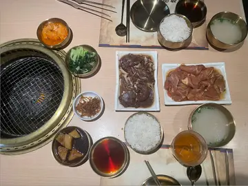 周末带着家人来高丽轩小聚,店里暖黄的灯光配着墙上简约的韩式插画,木桌木椅透着家常感,刚坐下服务员就端来一碟碟餐前小菜,辣白菜、腌萝卜摆了半桌,酸甜爽脆的口感很开胃。牛舌选的是薄切,铺在微烫的烤盘上几秒就熟,边缘微焦带着焦香。蘸点海盐入口,口感嫩中带韧,淡淡的奶香混着肉香,孩子用生菜裹着吃,说比厚切更入味。虎虾是原只上桌的,虾肉饱满透着亮泽,烤到外壳变红开裂就能剥壳。肉质弹牙带着清甜,蘸蒜香酱吃刚好解腻,父母说整只吃着过瘾,一盘四只分着吃也自在。扇贝带壳端来,表面只铺了层蒜蓉。烤熟后贝肉 Q 弹,蒜蓉香不冲,连不爱吃蒜的女儿都尝了半只。个头不算大,但新鲜无沙,家人觉得这样刚好不占肚。最后点了份石锅拌饭收尾,锅底锅巴焦香,米饭裹着酱汁,配着烤肉碎,孩子扒拉着吃了满满一碗。结账时看了眼账单,不算贵,一家人吃得舒服又满足,大概这就是适合家庭聚餐的模样吧。…查看更多