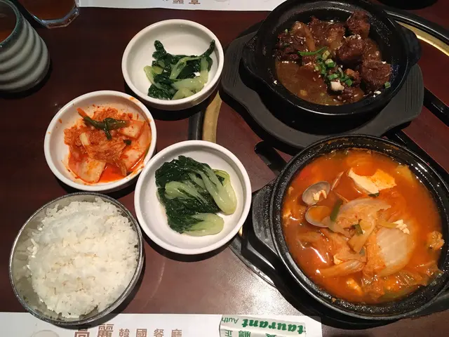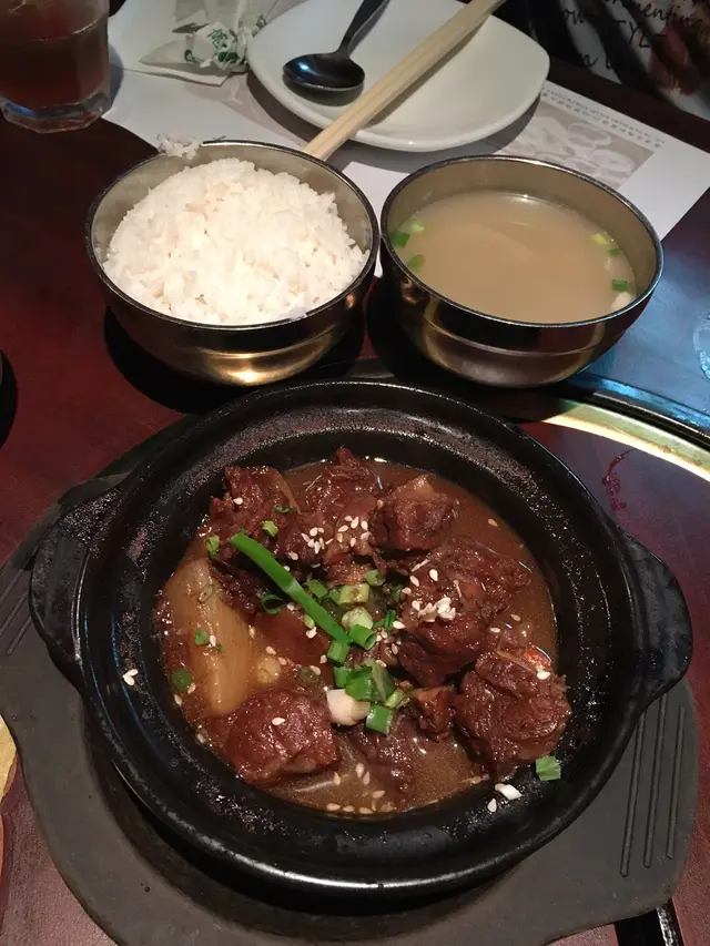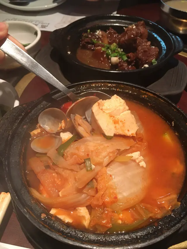 開咗好耐嘅韓國餐廳,記得以前成日嚟食,今日嚟試吓睇下質素有冇變🤔鍾意呢度嘅前菜,唔啱食嘅可以叫佢幫你換☺️我哋換咗白菜仔😋白飯都好大碗👍🏻仲有送餐湯:胡椒蘿蔔湯韓式紅炆牛尾($68)有好多舊肉😮全部都好腍👍🏻😋汁嘅味道幾濃,唔係紅酒汁嗰種。海鮮豆腐辣湯($68)食唔到辣嘅我,叫咗佢小辣,係我接受到嘅辣度😁海鮮唔算多,有一隻蝦,幾粒蜆肉同埋幾多豆腐。有好多娃娃菜🥰仲有甜品送:今日喺綠豆沙👍🏻侍應好忙,冇乜招呼我哋。呢度午餐仲有燒烤😮,仲有學生價幾抵食。但係我哋叫嗰啲就一啲都唔平,好似普通出面嘅餐廳咁。查看更多
