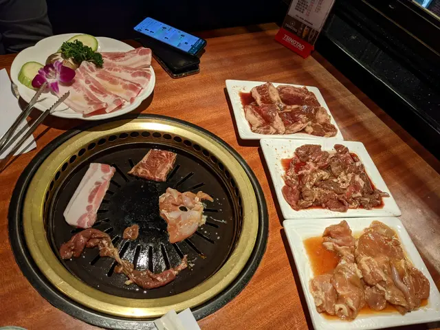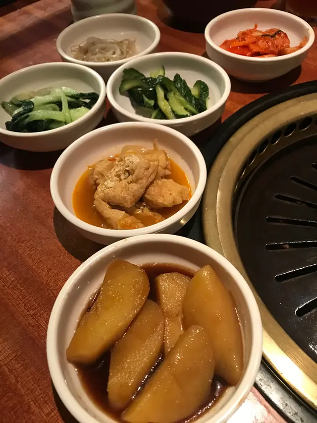 黎到北角想食韓燒,就試下呢間開左好耐既韓國餐廳。地點都唔算易揾,入到去好有舊式韓國風味,好香燒肉味!2個人叫左4人餐,因為有6款肉揀,揀左青口,羊肉,雞肉,牛肋骨,豬腩肉,魚,每位跟1碟芝麻油鹽醬,韓式甜醬油,有6款前菜小食,跟4個飯4個湯,可以後上或免上。韓國真露燒酒,配燒肉最正,但因為有湯,1個人飲唔哂1樽。6款前菜小食,全部凍盤,韓國泡菜唔錯唔太辣,甜醬薯仔好軟熟香甜,甜魚仔乾好味,芽菜好香芝麻油香味。上羊肉時,服務員講左係牛,然後食落都似牛,服務員話因為用左韓式醬所以冇左羊so味,青口幾鮮甜好味,雞肉燒出黎好多汁嫩滑,羊肉真係冇乜so味,不過好多肉碎,魚好香滑多汁,有機會再黎試下其他菜式。查看更多