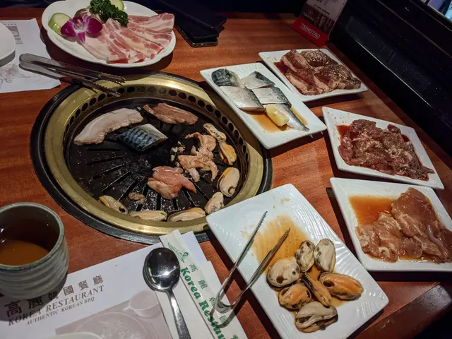 二人相約於北角晚聚; 訂了高麗苑韓國餐館。以前食過是自助餐任食、人蔘雞湯任飲……今時今日疫情; 已變套餐形式……我們叫了2人餐……三肉類: 牛肉、牛 舌、豬腩肉。有5小碟前菜、海鮮湯、飯!只需$288 +1 0%……另加飲品 菊花茶一大瓶$23 。因晚市只有二至三枱、姐姐服務非常好!味道……正、料……不錯; 雖然雪'藏肉、但燒烤後味道相當好!查看更多