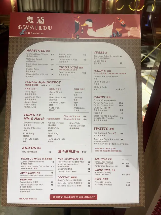 新派潮州打冷餐廳,菜式擺盤精緻,更提供雞尾酒、紅白酒等飲品;裝潢集懷舊風及西式酒吧元素,以紅色作主調,環境優雅舒服,打卡一流。