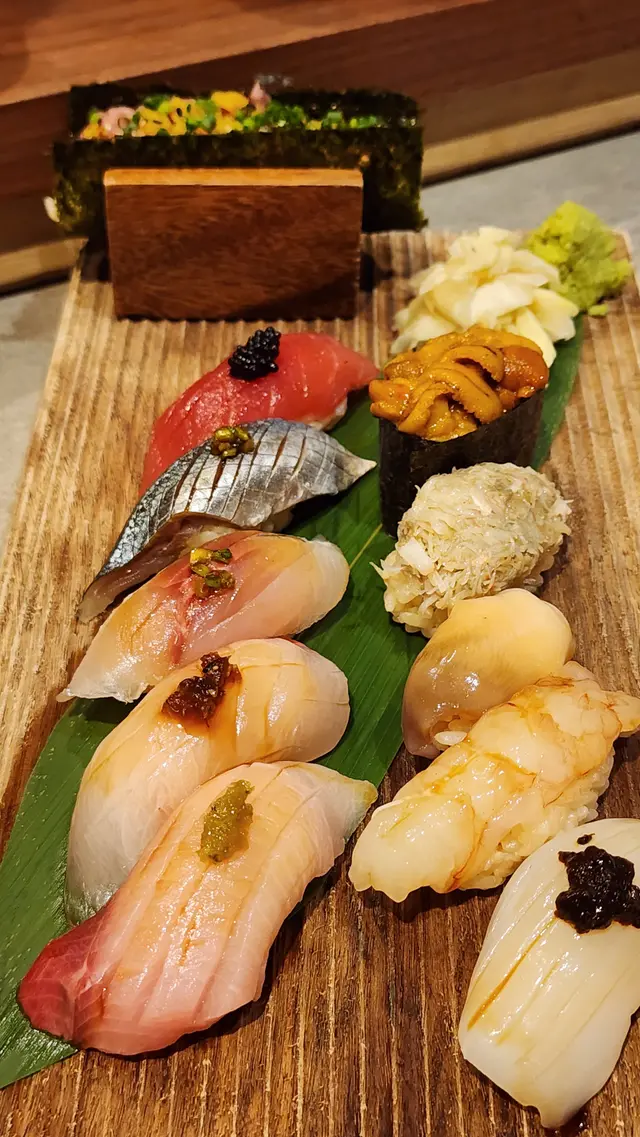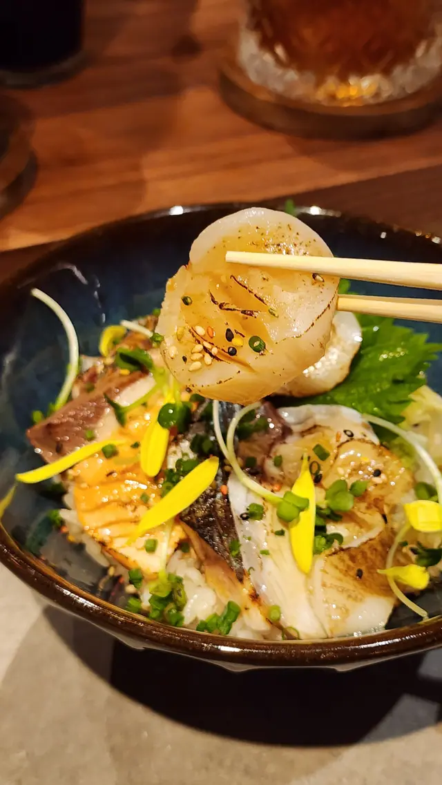 魚がし日本一,位於活化後嘅中環街市,主打日式料理料理吧枱別具特色,配上現代化的日式佈置旁邊仲有酒櫃,放有酒精飲品、清酒等是中環街市中享受日式美食美酒的好選擇🍶🍣廚師特選壽司十貫壽司加上手卷,手工精緻、用料新鮮金目鯛、油甘魚、池魚、真鯛、吞拿魚魷魚、赤蝦、帆立貝、蟹肉蟹膏、海膽🍣蔥吞拿魚蓉手卷,以日式木架盛載綿密的吞拿魚蓉直擊味蕾,鮮味充滿口腔🐟金目鯛肉質柔軟而鮮味🐟拖羅入口即融,爆發油脂感與鮮味🍤赤蝦口感軟綿,鮮甜濃郁🦑魷魚滑溜而煙韌,口感細膩,令人驚喜🦀蟹肉蟹膏味道香濃,帶絲絲蟹肉口感壽司以黑松露、柚子胡椒等調味點綴,味道層次更為豐富🍱海鰻魚丼🐍炙燒穴子海鰻,表面帶點炙燒焦香,底部依然細嫩搭上絲絲紫菜與片片菊花花瓣,口感清澈淡雅玉子燒蛋味滿滿,食落厚實有層次🍲茶漬麵豉湯麵豉味道濃厚,帶有點點芝麻風味 令人意想不到碗中竟有鯛魚片,入口鮮味軟滑🐟底部還有泡飯,鯛魚片與泡飯配襯出麵豉湯的味美🍸Suntory 蜂蜜蘋果酒🍎入口順滑不太刺激令人享受的蘋果風味之間帶有蜂蜜餘韻🍯伴隨微微的酒精感,令人陶醉🍹水蜜桃乳酸水蜜桃搭上乳酸,味道甜美而清新入口氣泡感十足,在夏日中帶來清涼感覺總結而言,魚がし日本一用料新鮮,料理方式出眾,酒類繁多是一間高質而值得一試的日式料理😋…查看更多