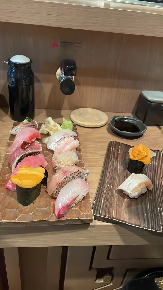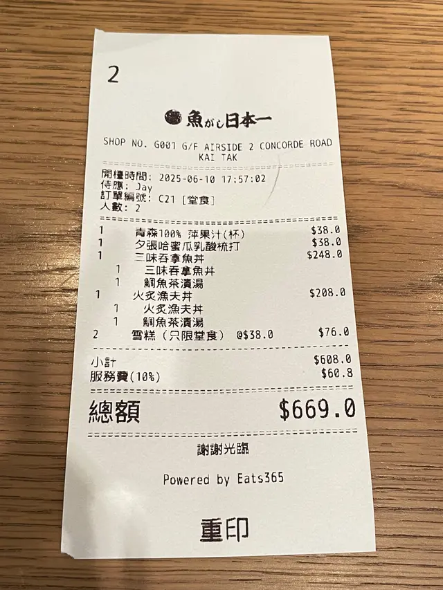 原來呢個係喺1989年成立既品牌,喺日本有30間分店ga,舖頭名帶有日本最佳魚產既意思,秉承住「七鮮」既原則,講求新鮮,即席切割、煮、焗、炸、燒同壓~ 而且用開放式壽司🍣吧檯設計,雖然只可以同時容納15位客人,反而有日式小館既風味~ 食物變化幾多都唔錯~(5 😍 係滿分,🤩係半分)火炙漁夫丼 🍣🍚 - $208 (好味指數:😍😍😍😍)我向來都幾鍾意食炙燒海鮮🔥,所以今次試下呢個飯🍚🤩 首先上面有燒過🔥既帶子⚪️,質感軟嫩,味道清甜,仲有6款魚🐟tim~ 金線鯛🐟比普通鯛魚更加鮮甜,肉質緊實~ 梭子魚🐟鬆軟鮮甜,魚肉油分少但魚皮油脂豐富,反差令到鮮味更加突出~ 黑鯥鯛🐟肉質細嫩彈牙,肥美清甜~ 右口魚邊🐟肉質嫩滑,油脂豐富~ 大拖羅🍣夠曬肥美,入口即化~ 鰹魚🐟魚味同煙燻味濃郁,幾有咬口~ 口感豐富幾正🤤同時配左個鯛魚茶漬湯 🐟🍵🥣,有清香既茶味🍵,味道鮮甜,亦有埋軟嫩鮮味既鯛魚刺身🐟同埋少少飯🍚,飲完暖笠笠咁😌三味吞拿魚丼 🍣🍚 - $248 (好味指數:😍😍😍😍)跟住就食翻個原汁原味既刺身丼,一下可以試曬赤身🍣、中拖羅🍣同埋大拖羅🍣,赤身 🍣 脂肪比較少,魚味香濃,肉質細膩結實~ 中拖羅 🍣 就介乎於赤身同大拖之間,肉質細嫩又有拖羅既油香,魚油甘香同濃郁魚味並存~ 而大拖羅 🍣 會再淺色啲~ 脂肪分佈到好似雪花❄️咁,有豐腴油脂既甘香,入口即溶🤤 另外一樣配左個鯛魚茶漬湯 🐟🍵🥣幾好😌青森100% 蘋果汁 🧃- $38 (好味指數:😍😍😍😍)蘋果🍎香味濃郁,清爽芳香,酸酸甜甜,果味自然幾好飲~九州甘王草莓乳酸梳打 🍓🍹 - $38 (好味指數:😍😍😍😍)香氣撲鼻,味道香甜,另外因為有乳酸就有啲微酸,配埋有刺激感既梳打🍹幾唔錯~雪糕 🍨 - $38 (好味指數:😍😍😍😍🤩)今次既雪糕🍨係宜家大熱既開心果味🟢,雖然望落比較淺色,但味道濃郁醇厚,入口回甘,唔會好甜,口感細緻creamy, 亦有幾香濃既奶味🥛,好食😋好味指數:😍😍😍😍推介指數:😍😍😍😍…查看更多