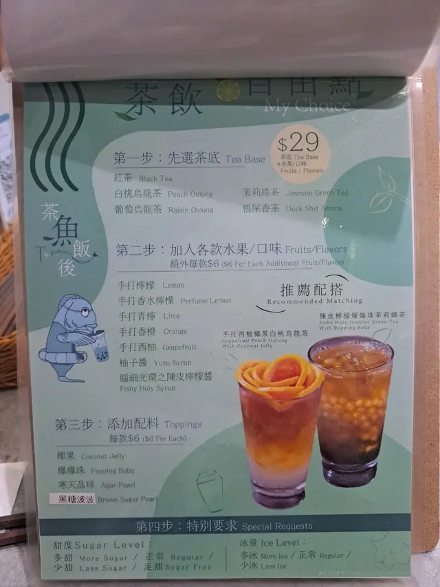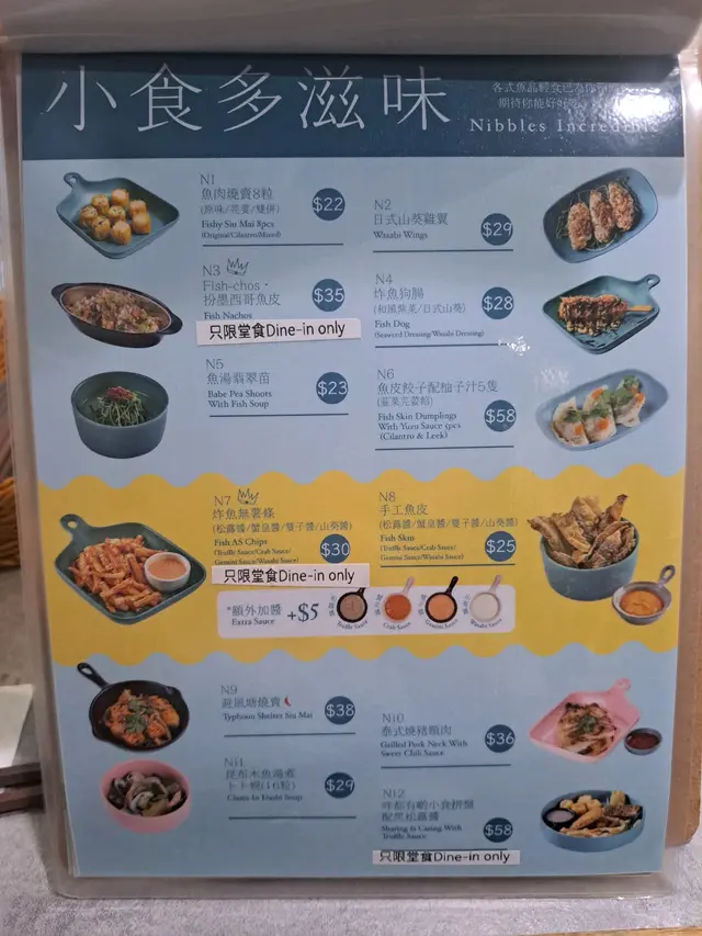 Visited this Michelin Bib Gourmand resto in Fortress Hill with my family for lunch, since I got a HKD5 coupon from my colleague..Our meal started with the free Imitation Shark's Fin Soup provided by the resto. The soup was quite rich with a gelatinous texture. My dad ordered the Pork Cutlet with Fish Noodles in Cheesy Dressing. The thickly sliced pork cutlet arrived piping hot, with an extremely crispy skin and a tender, succulent interior. Dipping it with the cheesy dressing elevated its savoury. My mom ordered the Cilantro Lover. This bowl of noodles came with two dumplings and a generous amount of cilantro, emitting an intense cilantro smell. Both my sis and I chose My Noodles My Choice with Three Toppings. My sis selected Fishy Spring Roll, Cuttlefish Ball and Duck Blood as toppings, Rice Noodles as the noodle base, and Snow White Fish Soup as the soup base. I chose Cuttlefish Spring Roll, Fish Dumplings and Duck Blood as toppings, Fishotto as the noodle base, and Clear Dashi Soup as the soup base. The Fishotto, made from fish, resembled rice grains, giving a sensation similar to soaked rice. The broth was clear and flavourful. The Cuttlefish Spring Roll was elastic, while the fish dumplings were juicy. .The resto, with a turquoise blue colour scheme, brings to mind the sea. Although not very large, the seating is generally comfy.…查看更多