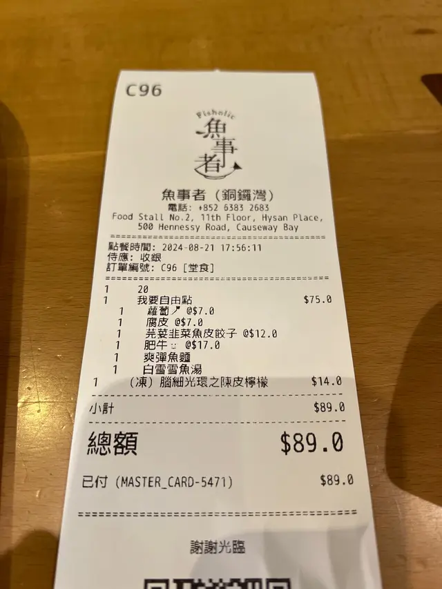 魚事者 (希慎廣場) (銅鑼灣) 網址: https://s.openrice.com/QrbS0bLqC00 地址: 香港銅鑼灣軒尼詩道500號希慎廣場11樓1102號舖 電話: +852 63832683