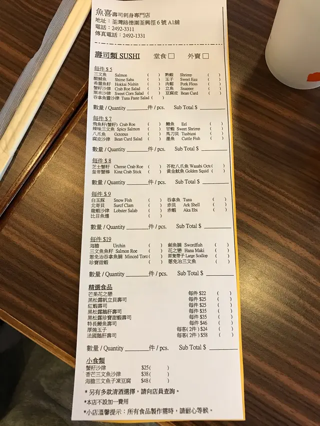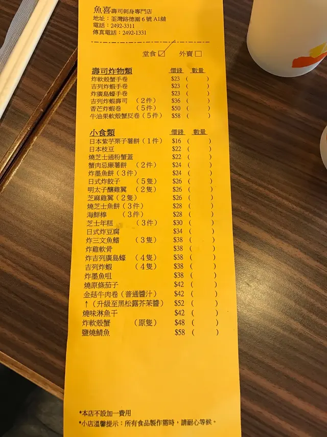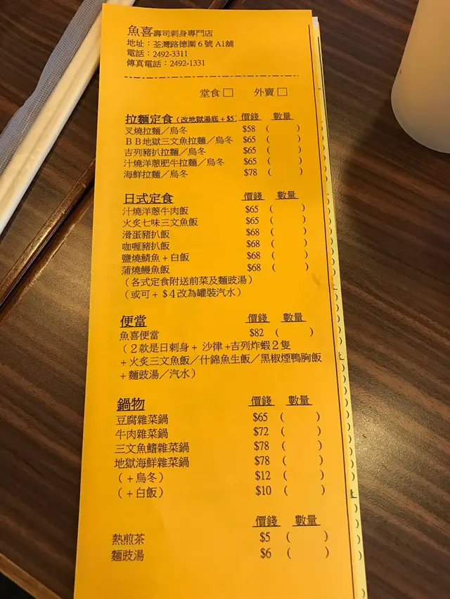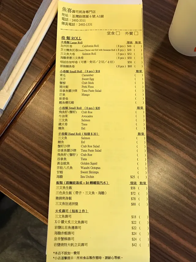 魚喜壽司刺身專門店 (荃灣) 網址: https://s.openrice.com/QrbS0RdO700 地址: 香港荃灣路德圍6號地下A1舖 電話: +852 2492 3311