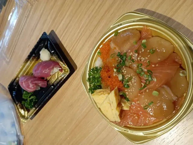 今日喺中環試咗一間壽司店——"魚屋"。呢間店聽講性價比不錯,所以我哋點咗醬油漬刺身飯同藍鰭吞拿魚腩壽司。首先講下醬油漬刺身飯,價錢的確相當吸引。飯上面有帶子同三文魚,海鮮新鮮度尚可,不過切工唔太理想,有啲部位比較chewy,咬落有少少硬。同埋配料比較單調,得帶子同三文魚,食落去有啲悶。另外,醬油稍為過鹹,影響咗整體味道。至於藍鰭吞拿魚腩壽司,質素都算唔錯,不過同刺身飯一樣,切工有待改善,有啲唔係咁滑嘅感覺。雖然味道ok,但冇話特別驚喜。總括嚟講,"魚屋"嘅價值的確唔錯,如果想搵個快捷方便嘅外賣午餐,呢度係一個ok嘅選擇。不過,如果你對壽司要求較高,可能會有點失望。希望佢哋可以改善下切工同醬油嘅調味,令整體經驗更加理想。…查看更多