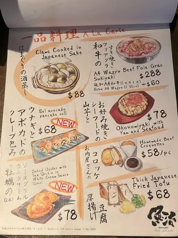 淮山海鮮大阪燒 Okonomiyaki with Yam and Seafood ($78) ★★★★✰此與傳統麵粉感重的大阪燒很不同,而是使用淮山作為澱粉,有點像薄批薄餅,加上大阪燒的mayonnaise、醬油、木魚絲,味道不錯。表面的蝦仁也爽口。整體而言,雖然是集團餐廳,餐牌食物選擇也不如一般其他居酒屋多,但這間餐廳以同區同類食肆來説價錢非常合理,坐得舒服,店員服務周到,也值一個solid的「