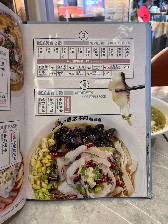 今日去咗北角做嘢,食飯時間食啲好嘢,記得呢頭附近有間魚眾不同,知道佢哋嘅酸菜魚係整得唔錯,一諗到就即刻想去食。我11:30左右去到,未到正式午飯時間,所以好快就有位坐啦。我本身係鍾意食辣,但係又唔可以食得好辣。我睇咗佢哋個餐牌一陣,就揀咗佢哋嘅檸檬酸菜魚配小小辣。佢呢個檸檬酸菜魚係配鱸魚,另外仲可以加兩款配料,我就配咗黑木耳同埋豆腐皮。等咗一陣,我嘅檸檬鱸魚酸菜魚就送上嚟啦。聞落真係好香,我一嚟就飲咗佢啲湯,有檸檬香味加少少辣味,正。豆腐皮黑木耳好爽口,口感唔錯。米線都好滑,吸咗啲湯,好好味。下次做嘢經過呢頭會再嚟。…查看更多