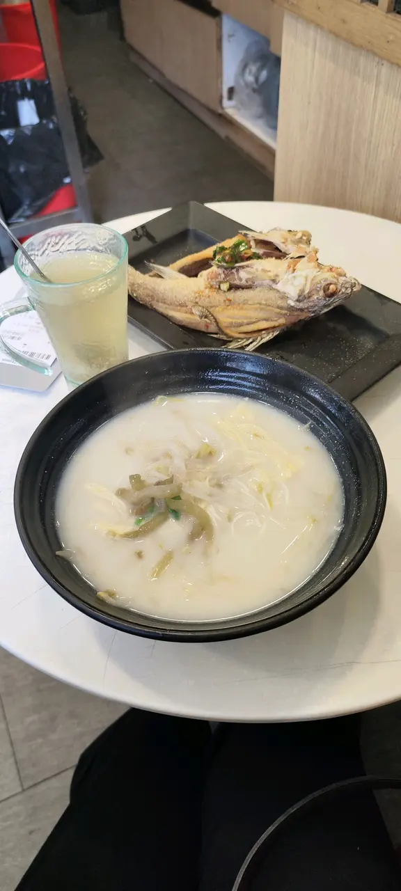 今次去咗元朗嘅魚米度食晚飯,夜晚人流都幾多,主要客人年齡都比較大,有啲都似係附近嘅街坊,食過幾次都覺得呢度嘅魚質素真係幾唔錯,第一次試咗佢哋嘅煎䱽魚配米線,煎䱽魚煎到非常之脆,但係肉質keep到好嫩滑,䱽魚都唔會好細條,另外佢個米線湯底都好好味,揀咗微辣嘅魚湯,味道好順口,魚味好濃👍🏻,另外米線都煮得好腍身,份量都算大份,仲試咗佢哋嘅炸魚腐,魚腐味道同出面嘅唔同,大讚佢哋嘅魚腐魚味好重,唔似參雜咗好多麵粉嗰啲,新鮮炸係熱辣辣,炸到個皮脆脆地好惹味另外極力推薦食佢哋嘅豉汁蒸䱽魚飯,佢哋嘅蒸䱽魚係我暫時食過最鮮味,配埋佢嗰支飲落嘅蒸魚豉油真係一流…查看更多