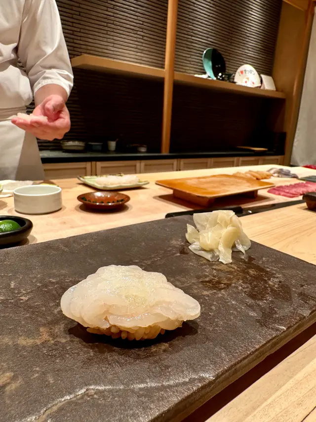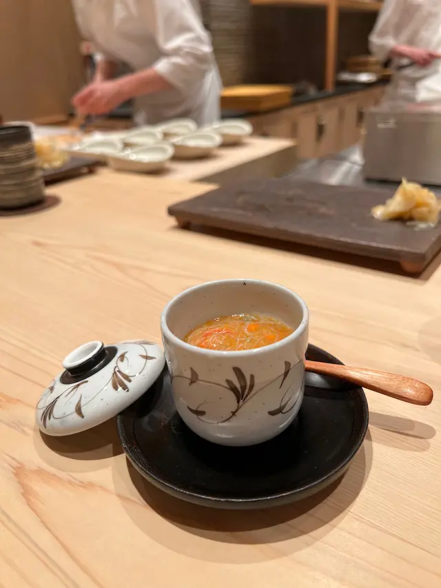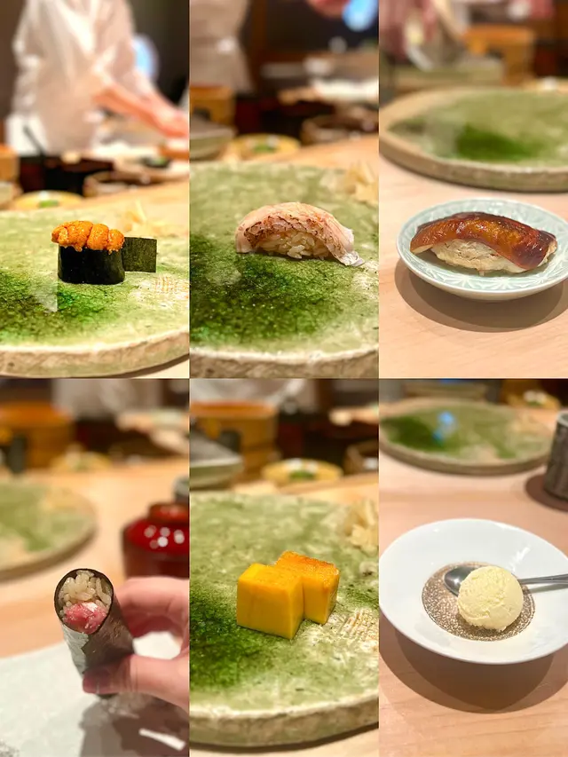 Sushi Wadatsumi|尖沙咀K11Musea|米其林一星来香港总要吃一次Omakase🍣早有耳闻的Omakase七点准时入场 多一秒都要在门口等已经不是预约困难店了提前3天就预定到了整体是我喜欢的风格没有过多的调味和花里胡哨的融合还原食材本身的鲜味晚市价格不便宜但这个价格算是吊打国内同等价格板前Dinner Omakase💰22806 Appetizers |Grilled Dish|12 Pieces Sushi |MisoSoup|Dessert炭烤白鳗/池鱼/象拔蚌/赤身/大腹/北海道甜虾/海胆/金枪鱼/鮟鱇鱼肝/池鱼/章鱼腿/金木鲷/黑鲍鱼配鲍鱼酱,不得不说最后甜品吉士萄挞,清爽解腻,层次丰富~吃到肚皮滚滚…查看更多