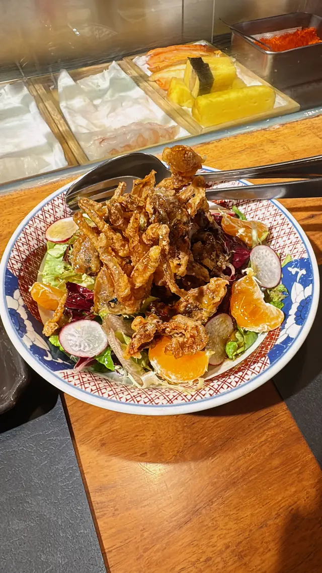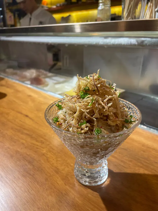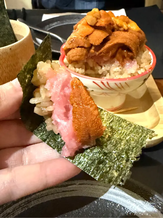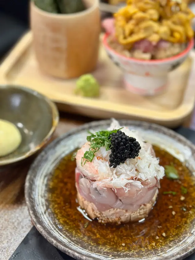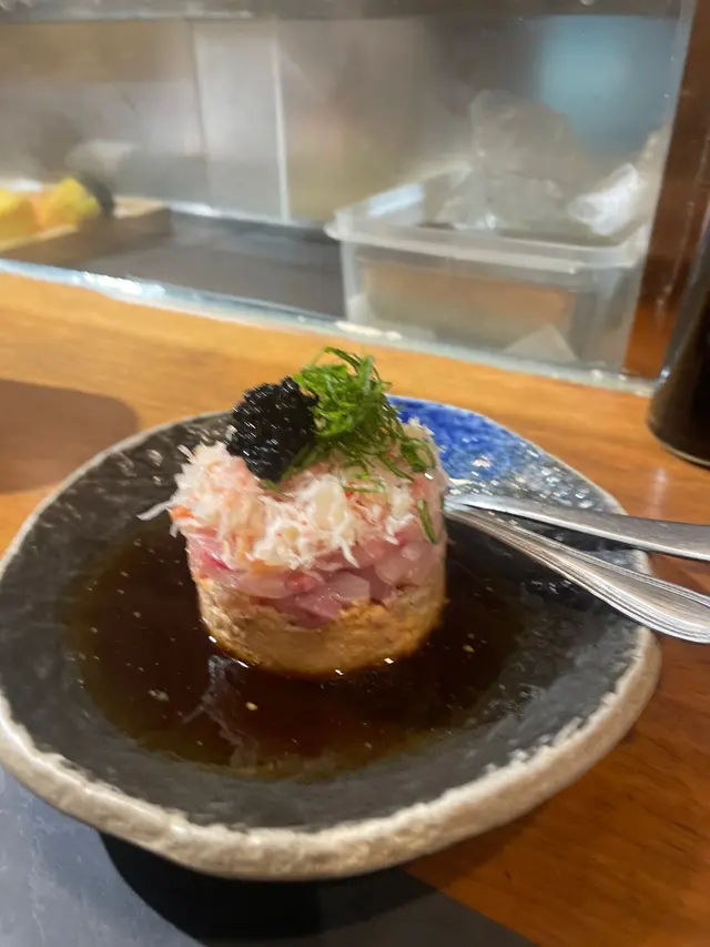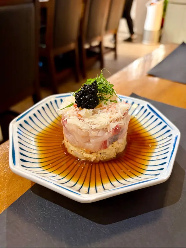 今晚來到尖沙咀著名的「食街」厚福街,上到 18 樓的鮨一。這裡的環境舒適,一直以高質刺身和創意料理聞名。這次趁著秋末冬初,專程來試試這裡的時令菜式,果然沒有失望!👌✨ 特別推薦軟殼蟹蜜柑沙律,用了柑橘的酸甜清新解去了軟殼蟹炸物的油膩感,是很聰明的搭配。🍊🦀 季節限定:香箱蟹 這個季節來絕對不能錯過!香箱蟹即是雌性的松葉蟹,雖然體型較小,但精髓在於那滿滿的蟹籽(外子)和蟹膏(內子)。師傅拆肉拆得很乾淨,蟹肉鮮甜,混合著粒粒分明的蟹籽,口感層次極豐富,每一口都是大海的鮮味,不用太多調味已經好滿足!🤤🔥 創意之選:涼拌麻婆白子 這是今晚最驚喜的一道!通常白子都是酢漬或天婦羅,這裡竟然用了「麻婆」風味。白子本身口感如奶油般綿密 Creamy 🥛,配上微辣惹味的麻婆醬汁,剛好中和了白子可能會有的膩感,這種中日 Fusion 的配搭非常大膽且成功,超級送酒!🍺滿滿甜蝦杯:超邪惡,蛋黃汁滿佈甜蝦杯,超級鮮甜!🐟 鰈魚邊杯:經過火炙的左口魚裙邊油脂逼人,入口即溶,拌著醋飯吃,那種油脂香氣在口腔爆發真的太「邪惡」。寒鰤蟹肉安康魚肝三層塔:安康魚肝素有「海中鵝肝」之稱,口感細滑,配上清新的紫蘇葉和鮮甜蟹肉,平衡感做得很好,層次分明。🦪 西非生蠔 蠔身飽滿,海水味適中,帶有淡淡的金屬餘韻,非常新鮮,作為前菜開胃一流。🌊🍢 串燒與熱食 串燒方面發揮穩定,鹽燒白鱔皮脆肉彈;和牛粒串保留了豐盈肉汁。📝 總結 :這是一間適合朋友聚餐或約會的居酒屋。食材新鮮度非常有保證,最欣賞他們在傳統食材上加入創意。這裡的氣氛和食物質素絕對值得一試!推薦回訪。🌟…查看更多