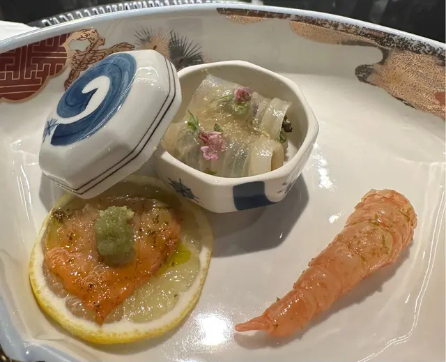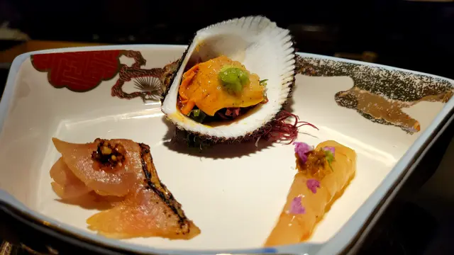 今晚相約朋友去食最愛嘅日本菜~每位$1380,款式非常多~我地食到津津有味👍🏻|前菜|❤️慢煮鮟鱇魚肝肉質好腍滑甘香,加少許酸汁啫喱特別醒胃提神~❤️根室馬糞海膽十分creamy,加白鹽更加提出海膽鮮味~|刺身五點|❤️山葵橄欖油赤貝,爽口清新、山葵帶來少許辣味刺激❤️右口魚鮫蝶魚、輕輕燒香過魚味較濃,伴有紫蘇花、酸酸甜甜味道好開胃❤️紹興酒牡丹蝦,有帶酒香醉蝦嘅感覺~❤️中吞拿、魚香芥末口感融為一體,好新鮮~❤️大吞拿魚油香更濃,加上卜卜脆芥辣籽無咁油膩,食落就無咁油膩~|大船渡灣蠔|配香草檸檬汁,超級肥美鮮嫩,食到大滿足啊|魚翅蒸蛋|好嫩滑,醬汁調得濃稠混合蒸蛋食好美味同時又好暖胃~食日本菜當然要飲兩杯,清酒「一生幸福 」好名~味道清清地,淡淡酒香好順滑入口,配菜一流~|三重縣新鮮北寄貝|蒜蓉牛油煮,旁邊有炸沢蟹有椒鹽味,好鬆脆~|白燒鰻魚|柚子胡椒檸檬汁,提起鰻魚鮮味啖啖肉好肥美~|兵庫縣 螢光魷魚|珍珠米吸收晒魷魚鮮味好入味~同配埋龍蝦汁食得好滋味~|紫蘇和牛天婦羅|和牛煮到半生熟中間好粉嫩軟滑,白松露葉炸到脆,口感好豐富~|富山白蝦|蝦味特別濃,加少少明太子檸檬汁好|黑鯥魚|燒香外皮魚香散發特別出~肉質油潤好好味~|鯛魚紫菜飯|湯底清淡提起鯛魚香味,連胡麻、紫菜絲撈埋食成件事好夾~|靜岡蜜瓜、熊本蜜柑、綠茶奶凍|尾聲甜品生果、奶凍都有~果然日本蜜瓜係特別juicy多汁~綠菜奶凍上有銀箔點綴,綠茶味夠濃,份量啱啱好~…查看更多