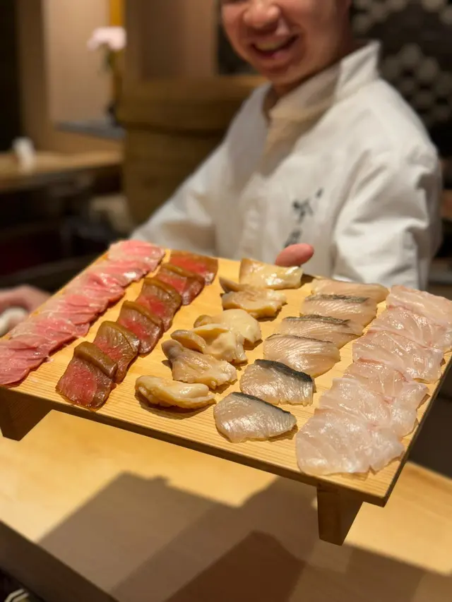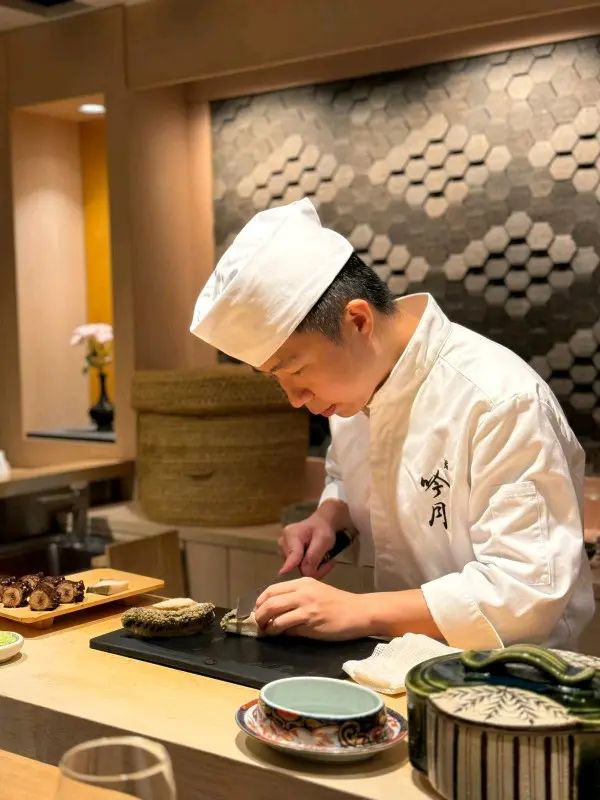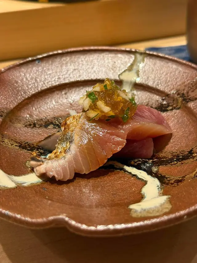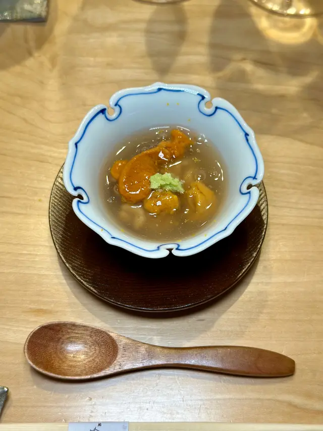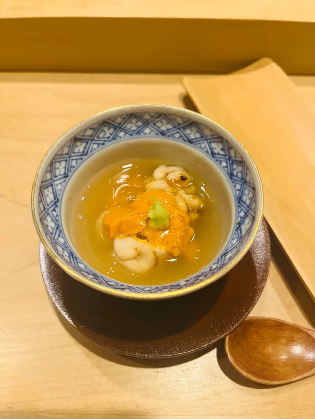 Dinner. Have heard many good things about Chef (who used to be at Shikon). Counter seating 8, taking over most decor of predecessor. One set menu at $1,980 pp.Here’s what we had. Steamed egg with Uni and corn右口魚 served with sauce made with its bones. Meat was firmer than 左口魚.Hokkaido octopus Slow cooked for 30 mins, served with Abalone steamed for 6 hours. Loved the Liver sauce, so smooth and buttery (chef reiterated he did not add any butter). Gave us a blob of rice to finish off.Ball of Matsuba Crab served in fragrant fish bone brothAnkemo served with yuzu skin and wasabi 黑鯥 aged for 1 week grilled over Charcoal served with plum and turnip 10 sushi: 方魚 (a kind of 石斑)Cuttlefish 北寄貝Chu toroOtoro秋刀 新子 (ie baby 小肌- we were lucky to have caught the season; with only a few weeks left. Chef used 2 fish per person; when brother came a week ago, chef had to use 3.)馬糞海膽牡丹蝦海鰻Tamago with clam soupDessert: peach pieces on tea ice cream.In summary: rice was at perfect acidity. Good quality ingredients. Excellent value for money. Highly recommended.…查看更多