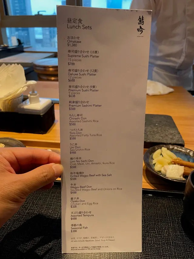 🥰 三年前, 初試 “鮨吟”, 大開眼界, 不時都諗住帶 “皇太后” 嚟探店.😱 時光飛逝, 劇情真係玩到 “鮨吟” 宣佈結業了, 今日把握最後機會, 安排 “皇太后” 微服出巡, 點咗 午餐 Omakase, $1,380+10%. Do 師傅一打九.🐟 刺身 / 熟食象拔蚌魚子醬, 白蝦, 吞拿魚蓉剝皮魚池魚珍蠔拖羅, 配鵝肝冰毛蟹肉, 螢光魷魚, 鰻魚苗炸白蝦赤貝青瓜紫蘇卷🍣 壽司花竹蝦大拖羅海膽新鮮北寄貝拖羅筋鯖魚🥣 公魚湯🍩 甜品海綿雞蛋咖啡酒宮崎芒果紅豆雪糕🥢 餐廳裝修和諧舒適, 分兩個用餐區, 一邊設方枱, 望馬場, 另一邊設肥U型壽司吧枱, 望樓景.🐚 九州象拔蚌, 配沖繩岩水雲. 象拔蚌爽甜, 配酸酸嘅水雲, 完美結合!🦐 魚子醬, 白蝦, 吞拿魚蓉. 魚子醬帶領味道, 白蝦同埋 吞拿魚蓉 充實口感, 不俗!🐟 剝皮魚, 撈魚肝. 嘩, 剝皮魚滑捋捋, 魚肝味道豐郁, 驚喜之一.🐟 池魚, 配紫菜. 池魚幼切, 玩芝麻調味, 放上紫菜一齊食, 唔錯.🦪 瀨戶內海珍蠔. 加咗少少椒味, 有趣.🥰 拖羅, 配鵝肝冰. 據師傅介紹, 鵝肝以紅酒浸浴, 再雪硬, 即塲刨出嚟, 少少似刨松露, 哈. 鵝肝冰入口即溶, 好似雪糕咁, 溶哂黐住肥美嘅拖羅, 肝味慢慢滲出, 十個讚!🦀 毛蟹肉, 螢光魷魚, 鰻魚苗. 酸菜魚味湯底, 即塲倒入容器, 食材被淥到岩岩熟, 有趣! 可惜搞完一輪, 湯唔夠熱, 哈.🍟 炸白蝦. “皇太后” 最愛之一. 師傅以 “麥當勞蘋果批” 包裝出塲, 賣相加分.🐚 赤貝青瓜紫蘇卷, 配九州佐賀冰菜. 赤貝新鮮, 冰菜脆口.🍣 九州花竹蝦. 半生熟, 爽彈, 出色!🍣 大拖羅. 肥美呀!🍣 馬糞海膽. 老老實實, 一般般!🍣 新鮮北寄貝, 加咗生花椒. 鮮甜爽口, 帶少少海水味.🍣 拖羅筋. 呢個精彩, 燒拖羅條筋, 迫出魚油.🍣 鯖魚, 配白板昆布, 紫菜. “皇太后” 話鹹咗少少.🥣 公魚湯. 味道偏淡麗, 唔係我杯湯.🍮 海綿雞蛋. 香滑軟綿, 一啖食晒.🥂 咖啡酒. “鮨吟” 嘅指定作結動作.🥭 宮崎芒果. 出動名廠 “大陽之子”, 聽講一棵樹得一粒芒果, 等佢熟咗跌落嚟, 又甜又多汁.🍨 紅豆雪糕. 非常好食, 完美結束.🤗 總結: 人有悲歡離合, 月有陰晴圓缺. 臨別秋波, 枱枱都係熟客, Do 師傅忙到甩轆, 但節奏控制仍然出色. 論食物, 師傅嘅菜式創意同變化依舊十分精彩, 最緊要 “皇太后” 食得高興. 再見 “鮨吟”, 再見 Do 師傅.📖 偷聽番嚟, 原來 “鮨吟” 係深圳有兩間分店!…查看更多