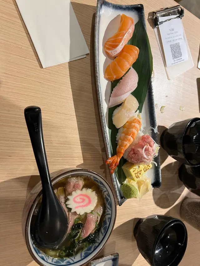 是日嚟咗呢間日本餐廳食午餐,點咗佢哋嘅Lunch set, 有壽司拼盤又有烏冬,整體感覺都好出色,味道好好,份量適中,價錢亦都合理。壽司拼盤有唔同種類嘅壽司,例如三文魚、帶子、甜蝦等等,每款壽司都好新鮮,賣相精美,味道鮮美,而且每款都有啲不同嘅風味,令人回味無窮。烏冬煮得恰到好處,有啲Q彈嘅口感,湯汁味道鮮美,加埋啲牛肉,味道好開胃,非常滿足。餐廳嘅環境都好舒適,裝修又靚,而且服務員都好有禮貌,服務好好。總括而言,日本餐廳嘅壽司拼盤、烏冬都好好食,味道豐富,份量適中,價錢亦都合理,環境舒適,值得一試。如果你鍾意日本菜同壽司,一定要嚟試下呢間日本餐廳啦!查看更多