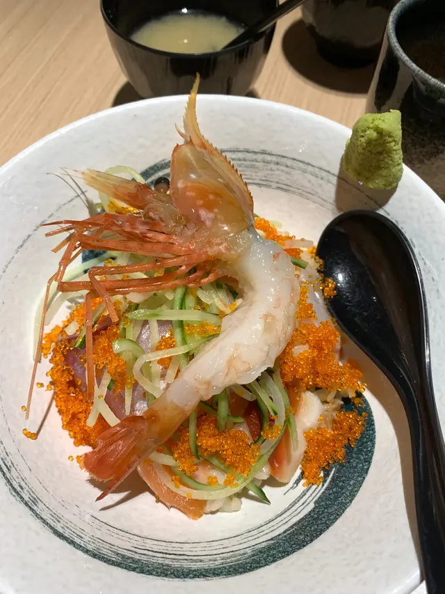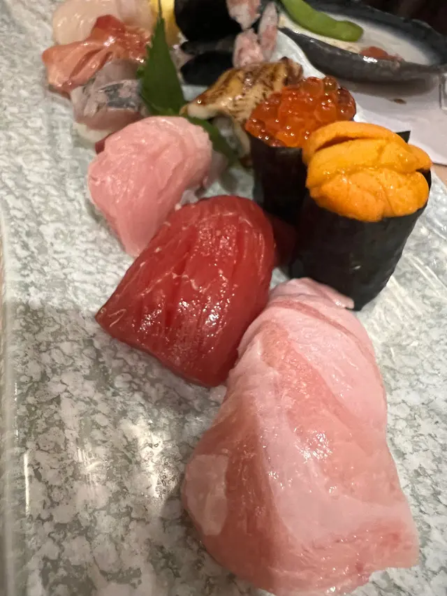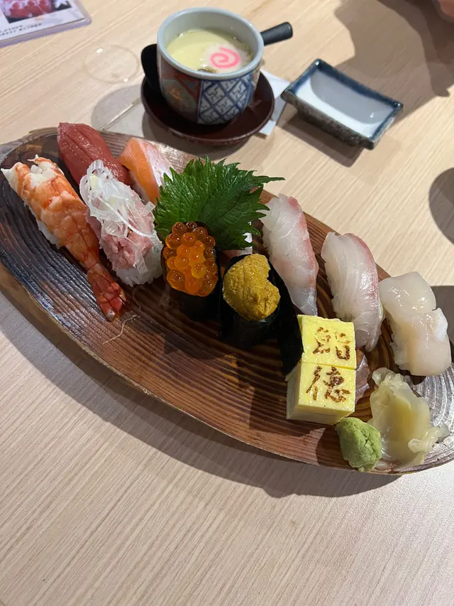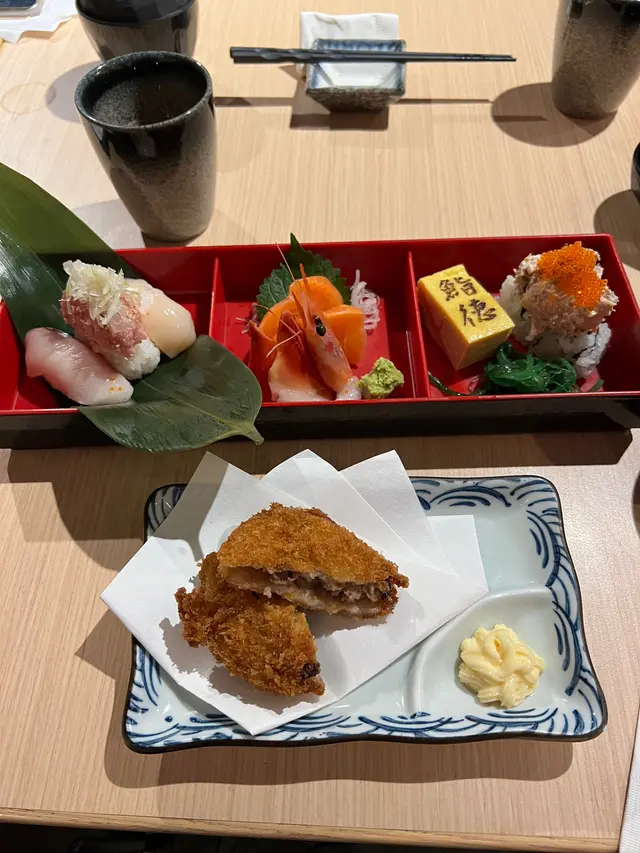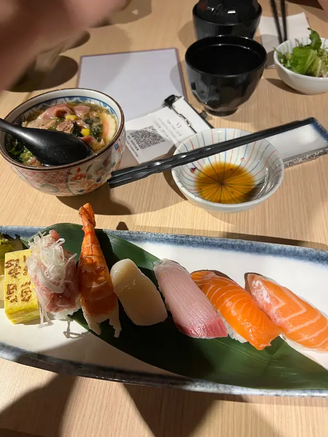 假日去咗美孚食個午餐,見個名「鮨德」好似唔錯,而且午餐多選擇價錢有$78至$288不等,一於試下。入到去應該餐廳唔夠人手,所以等咗一陣安排入座。坐低之後QR code落單,落完單一段時間都無茶,睇嚟唔問都唔會有。之後就詢問店員叫佢比杯茶我。揀咗餐牌第二貴嘅壽司十貫(廚師精選十貫、甜玉子)餐$158,覺得應該都會唔錯掛。壽司上枱賣相還可以,有熟蝦、三文魚腩、帶子、吞拿魚、油甘魚、吞拿魚蓉、三文魚子軍艦,海膽軍艦、兩件白身魚(大概應該係池魚/鰤魚)。竟然有熟蝦,都較少壽司拼盤有熟蝦🫠 海膽軍艦臭的、白身魚兩件都係非常腥🤮 三文魚蓉好似你喺急凍店買一包咁🤡 嘩…… 唯一有幾件係覺得算唔錯,帶子雖然細但鮮甜、三文魚子軍艦鮮味,吞拿魚油脂都唔錯。雖然呢個價錢唔係貴,但係個質素係可以好啲😐另外叫咗三文魚子吞拿魚蓉丼,啲三文魚子真係少到可憐🥹 好似一件壽司軍艦咁多度🤣 吞拿魚蓉唔再講,就好似上面壽司嘅感覺。跟餐嘅麵豉湯味道偏淡,蒸多太水,冇湯味。甜品嶡餅夠Mochi~ 餐廳食物質素有極大進步空間。查看更多