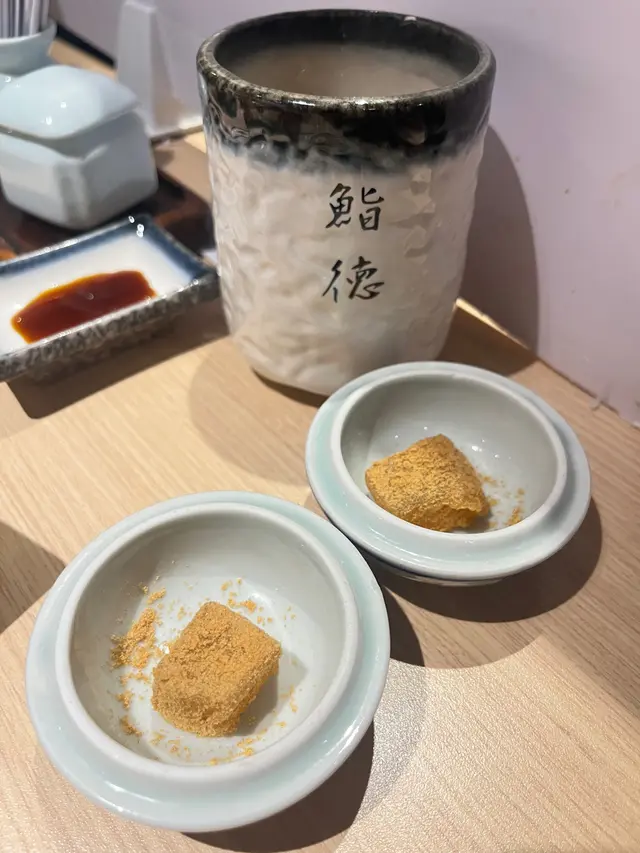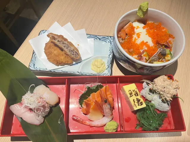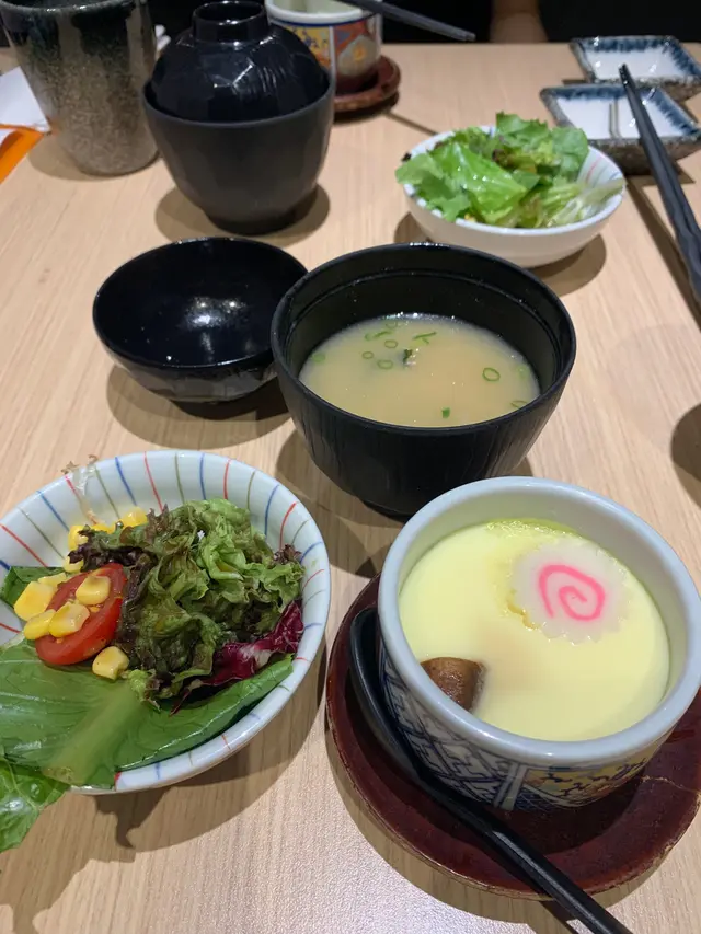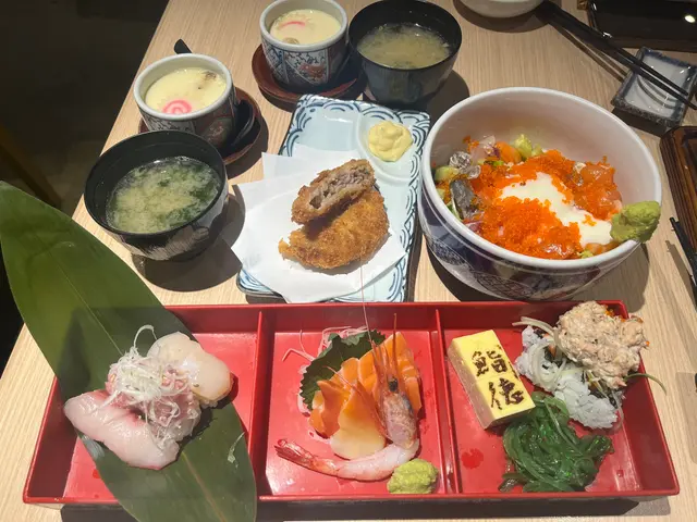 海膽什錦魚生飯。又黎到我出黎搵野食時間。幾fd出黎lunch …美孚附近⋯好似冇咩邊間日本野就黎左呢間餐廳,平日lunch 都少人不用排隊Lunch set ,每人都會有 日本蒸蛋,麵豉湯,沙律作為頭盤,因為要用app落單, 沒有Menu, 都吾知什錦刺身係咩刺身,所以最好問問侍應我就叫左 海膽什錦魚生飯,本身入面係甜蝦我加左錢轉牡丹蝦,另外魚生有4塊三文魚同油甘魚⋯個飯有埋少少紫菜碎,都好好味我朋友叫左吉列豬扒烏冬定食,韓式泡菜豚肉鍋,牛肉鍋。試食過吉列豬扒,好鬆脆,幾好食。最後每人都會送番一舊抹茶蕨餅甜品,好味😋查看更多
