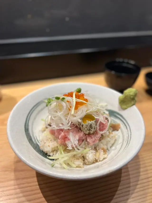 早前行經曼克頓山商場,在一樓盡頭內見到一間低調的鮨店,從狹縫中見到進入店舖前還得穿過一條長長的走廊,似進入日式庭園,好有神秘感。是日特意過來吃午飯,門外走廊簡潔有格調,燈光柔和溫暖,二人被安排至吧檯位置,坐得闊落。魚子蔥吞拿魚腩蓉飯 $98魚蓉味道鮮甜不腥,底下的飯略作調味,有少少冬菇和芝麻,混入鵪鶉蛋後質地更滑身,魚蓉份量和飯量比例一比一,吃得過癮。鮨德和食便當 $108汁煮牛舌有五六件,大大嚿份量多,煮得入味軟腍;本以為吉烈豬扒是來貨,望落薄身不寄予厚望,一吃皮脆口,不膩有肉香,應該是自家出品,驚喜。午市套餐還包茶碗蒸和甜品,定價七十多至三百多不等,確實豐儉由人,味道中上,省回搭車出尖沙咀的時間金錢,會回頭。查看更多