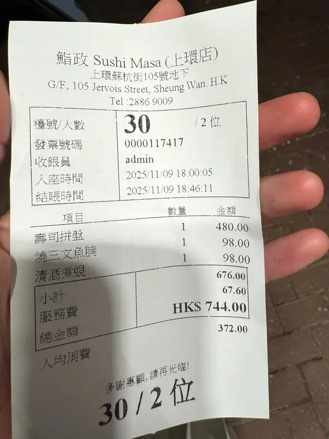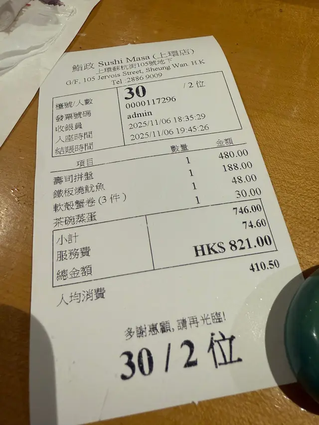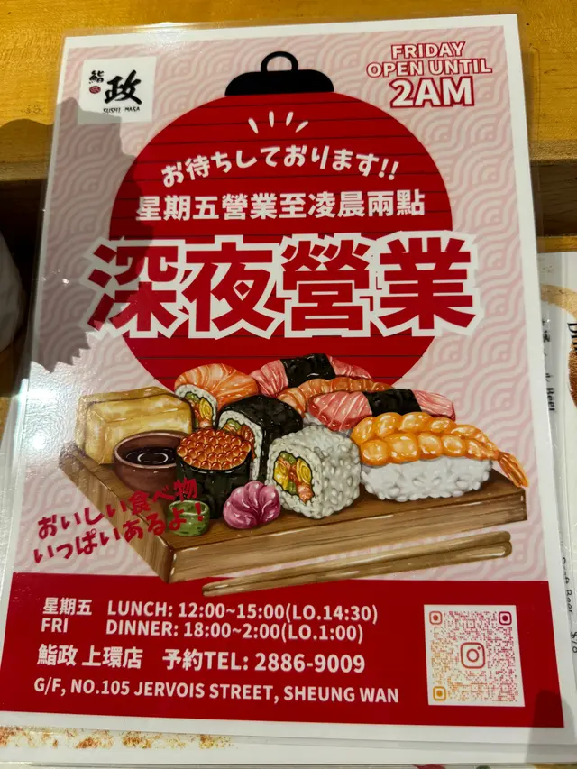 鮨政 (上環) 網址: https://s.openrice.com/QrbS0XYu800 地址: 香港上環蘇杭街105號地舖 電話: +852 28869009