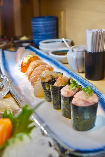 今日同朋友係中環食咗呢間壽司放題🚶🏻♀️佢個location 都方便,香港站E1出穿過中環街市,望住cotton on 嘅右手邊一入就會見到間餐廳,8-10分鐘內到,而且唔駛上斜又算近地鐵站非常好 !! 我地今次嚟食佢嘅HKD499 放題🤤🔥職員會同我地簡單介紹下落單方法另外呢度嘅壽司喺製作過程中會加入少量wasabi, 如果平時唔食wasabi嘅朋友記得提職員 remark~ 佢嘅wasabi 唔會太攻🤍👨🏻🍳🤳🏻8件豪華壽司拼盤❤️🔥嗌499 放題會先上一個豪華壽司盤,有8件壽司有549放題先包任食嘅大拖羅壽司❤️🔥海膽壽司三文魚籽壽司❤️另外包括鯖魚壽司鰻魚壽司❤️三文魚腩壽司油甘魚壽司油甘魚腩壽司❤️呢個盤好高質,大拖羅入口即溶好有油脂香,唔洗點豉油都ok~仲有我鍾意嘅三文魚籽, 食落鮮甜唔腥( ´▽`)其餘嘅壽司味道都非常唔錯,全部都夠肥美食得出係新鮮處理,應油則油🤤個握飯做得唔錯,唔會散開,北海道產嘅米都幾好食~ 🌾呢個拼盤質素喺其他香港餐廳食應該都要最少200up ,絕對唔係是但塞飽你,所以499 放題會包呢個盤好唔錯🔥之後就到放題部分,👨🏻🍳🤳🏻清酒煮蜆 ❤️🔥(encored)本身有啲驚佢酒味會苦,但呢個做得勁好飲 !! 入口溫暖舒服, 唔苦,會有超淡清酒味,幾啱我胃口~ 👨🏻🍳🤳🏻壽司&刺身火炙帶子❤️🔥(encored) 火炙三文魚三文魚腩❤️油甘魚腩 ❤️🔥(encored)吞拿魚日本帶子❤️三文魚刺身甜蝦刺身overall 壽司刺身都好好食,全部都新鮮,魚肉厚薄大小適中,上台速度快每次最多每人嗌10件,佢會一條長碟咁上晒啲壽司,幾有睇頭之餘我角得都放便積員上台同清理幾好(ㅅ´˘`)♡大推薦 火炙帶子 !! ✨🥹 輕炙過入口暖暖地,帶子肉超級肥美新鮮🥹 💯油甘魚、三文魚同三文魚腩都好食,胃口大嘅不妨encore 呢幾樣~👨🏻🍳🤳🏻吉列炸生蠔炸得幾好食,配檸檬唔會太乾同埋會開胃啲🍋我鍾意佢唔會太大粒,反正放題可以再嗌,大細適中唔會好快就飽👍🏻🤳🏻麵豉湯有蔬菜同紫菜,飲落好香唔太咸好舒服✨👨🏻🍳🤳🏻茶碗蒸蛋好嫩滑有淡蛋香,大大粒香菇喺面,個底仲有其他配菜😚👨🏻🍳🤳🏻蕨餅&日本滑芝士蛋糕全部都係one-bite zise, 蕨餅煙煙靱靱,cheesecake 香滑creamy! 🤍兩樣都好食✨我地呢晚weekday 嚟到7 8 成滿食之前仲睇點解人地可以食咁多,到我自己食嘅時候發覺我都好似可以😂😂,最後本身想encore 多少少,但近排個胃比較敏感,都係8分飽就忍住停手 (好想試鯛魚湯拉麵我地其實算食得少,覺得中環算方便嘅地段,而且有呢個質素,都值得一試~ bookmarked 以後有特別日子都想再嚟🥹👍🏻