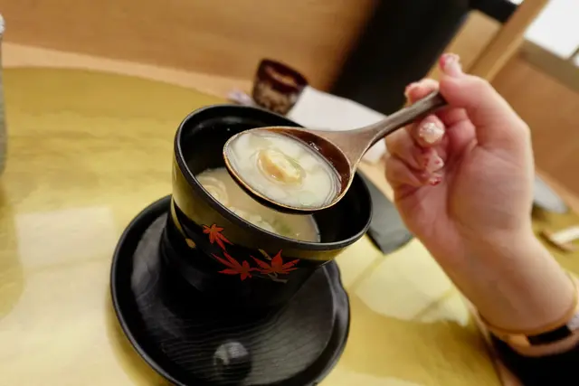如果想食Omakase,呢間鮨政x大湖可以話係CP值極高嘅選擇!第一次見用$398就可以食到嘅Omakase,仲要足足有成18品添啊,真係好值得一試!餐廳位於銅鑼灣站附近,地點方便~✨茶碗蒸蛋香濃郁,口感嫩滑,味道比平時嘅更香濃~✨招牌飄雪鵝肝吞拿魚壽司將紅酒煮鵝肝化為飄雪,然後灑滿喺吞拿魚壽司上!賣相吸睛,味道出色~✨海膽甜筒係餐廳嘅招牌創意料理 !用香脆嘅腐皮整成嘅海膽吞拿魚蓉小手卷 ,散發住鮮甜嘅海鮮風味~✨北海道油甘魚刺身配八爪魚油甘魚經輕輕火炙過,魚嘅油脂香更突出!八爪魚亦非常爽口~✨吉列帶子伴他他醬香脆嘅紫菜包住熱辣辣嘅吉列帶子,仲有他他醬同埋三文魚籽做點綴,口感多元化~✨豚角煮配青椒仔豚角煮肥瘦均勻,表面仲有蘋果醬提味~✨時令壽司6貫有鰈魚、真鯛、深海池魚、帆立貝、金目鯛同埋赤蝦,味道各具特色~✨清酒煮鮑魚爽口彈牙,帶有淡淡嘅清酒香~✨沙錐魚天婦羅沙錐魚外脆內嫩,一啲油膩感都冇~✨切魚生卷一啖放入口,大滿足~✨魚湯魚香四溢,湯料仲有豆腐同昆布~✨哈密瓜最後用香甜嘅哈密瓜作結,清新解膩~查看更多