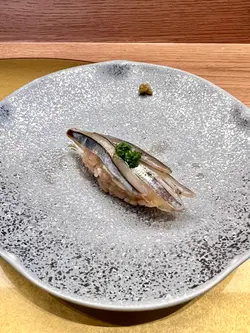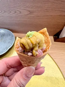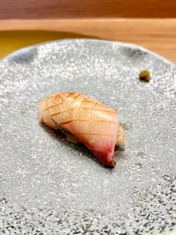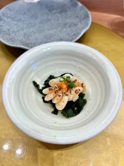 $398 共18品,CP值高!「鮨政 x 大湖」親民版的廚師發辦,質素如何?試過方有發言權!喜出望外,組合富心思,款式全面,製作認真,調味恰到好處,份量足夠食得飽。面積不大,全店只有一張壽司枱,可容12人,必須訂位。金菇茶碗蒸造型幾靚,見到已經好想食,面頭啲金菇似瑤柱,入口富鹹香更似,蒸蛋非常滑溜,內藏冬菇、肉粒、銀杏,足料製作,味道豐富。白身魚刺身.油甘魚刺身北海道水八爪魚色澤雪白,蘸少許竹炭鹽吃,一片比較爽,另一片有適量嚼勁。油甘魚已配上鼓油,回甘味甜,很討好,可加日本芥末添辛香。磯煮鮑魚伴肝醬配合自身鮑魚肝汁的做法無得輸,豐腴滋味,跟一口飯最完美,鮑魚伴肝醬菜式,永遠都是亮點。吉列帶子伴他他醬吉列帆立貝、他他醬、三文魚子及紫菜的組合,呢道真心好好食,夠熱夠脆,層次豐富。帆立貝酥脆味鮮,他他醬添潤澤,以紫菜包著增層次。角煮豚肉.蘋果蓉,青椒非常懂得配,鹹甜味道、果酸與肉平衡得很好。有肥膏的豬肉上、添加蘋果蓉有助平衡肉膩且添食味,仲有湯汁,又係甜甜的,滋味不膩,最後咬一口青椒,少許辣而已。壽司每一件皆已調味,用上酸度正合我意的赤醋米,刺身新鮮,有鯛魚、深海池魚、赤蝦、鯖魚、帆立貝、真鯛。炸沙追魚熱辣辣,如薯片般薄而香脆,炸醬超薄。招牌飄雪鵝肝吞拿魚壽司招牌菜,在吞拿魚赤身壽司上、刨下大量紅酒煮鵝肝,吃法很有新鮮感,鵝肝以紅酒浸醃過已減膩感,再刨成碎粒,輕盈得多,肥美感卻保持,溶化在吞拿魚壽司上,食味大大提升。角切魚生卷我認為是角切魚生飯的迷你精華版,有兩三款魚,口感鮮美。海膽甜筒想不到與雪糕甜筒配,更加甘香超甜,極之美味。海鮮湯真材實料久熬而成,奶白湯頭,味醇厚。季節甜品即係新鮮水果,超甜蜜瓜,完美的結束。…查看更多