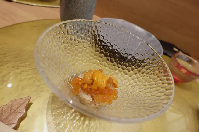 位置喺銅鑼灣fashion walk,靜中帶旺,裝潢簡潔得體,服務殷勤師傅好nice。座位15個,全部counter seats,可以望到處理過程同師傅互動。晚市omakase餐單兩分別$398 (18品)/ $598(20品),抵~ 午市15品$298亦好抵。雖然用料唔係最豪華最大堆頭,但體驗值唔錯都值得推薦。食完炸物已將我一人份所有魚料放出嚟,食壽司時魚料已經係室溫,而壽司飯係赤醋飯,鬆軟。蒸物🔱茶碗蒸(配沖繩海苔同櫻花蝦,蛋滑滑滑)料理🔱吉列帶子伴他他醬(配三文魚子,惹味有咬口)時令炸物🔱炸螢光魷魚 |日本九条蒽 (酥脆,配紫蘇葉同岩鹽)壽司🔱飄雪鵝肝吞拿魚壽司(餐廳招牌✨師傅喺面前刨鵝肝表演飄雪❄️加吞拿魚雙重享受,入口即溶👍🏻)壽司6貫🔱金目鯛(結實,彈牙,魚油豐富甘甜)🔱火炙左口魚(燒香後油脂多👍🏻👍🏻)🔱北海道帆立貝(有少少檸檬汁香)🔱俄羅斯甜蝦🔱長崎深海池鱼料理🔱磯煮鮑魚伴肝醬(鮑魚來自大連,厚切但好腍唔韌,入味,加咗開心果碎)海膽創意料理🔱海膽甜筒(北海道馬糞海膽,加咗吞拿魚蓉,甜筒用鱈魚乾干造成)時令刺身🔱油甘魚刺身(甘甜,配蛋黃麵豉醬鹹香)🔱真鯛刺身時令卷物🔱鰻魚卷物(濃味)🔱紋甲魷魚(肉厚甘甜,炒得爽脆)時令湯物🔱魚湯甜品🔱芒果沙冰(清爽醒神~底部都放咗乾果增加口感幾細心)查看更多