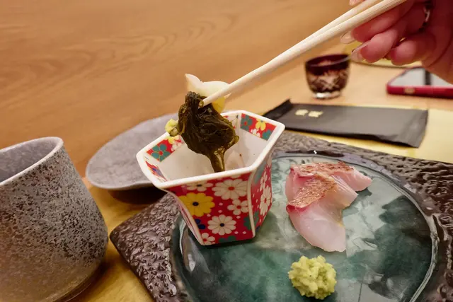 $398 共18品,CP值高!「鮨政 x 大湖」親民版的廚師發辦,質素如何?試過方有發言權!喜出望外,組合富心思,款式全面,製作認真,調味恰到好處,份量足夠食得飽。面積不大,全店只有一張壽司枱,可容12人,必須訂位。金菇茶碗蒸造型幾靚,見到已經好想食,面頭啲金菇似瑤柱,入口富鹹香更似,蒸蛋非常滑溜,內藏冬菇、肉粒、銀杏,足料製作,味道豐富。白身魚刺身.油甘魚刺身北海道水八爪魚色澤雪白,蘸少許竹炭鹽吃,一片比較爽,另一片有適量嚼勁。油甘魚已配上鼓油,回甘味甜,很討好,可加日本芥末添辛香。磯煮鮑魚伴肝醬配合自身鮑魚肝汁的做法無得輸,豐腴滋味,跟一口飯最完美,鮑魚伴肝醬菜式,永遠都是亮點。吉列帶子伴他他醬吉列帆立貝、他他醬、三文魚子及紫菜的組合,呢道真心好好食,夠熱夠脆,層次豐富。帆立貝酥脆味鮮,他他醬添潤澤,以紫菜包著增層次。角煮豚肉.蘋果蓉,青椒非常懂得配,鹹甜味道、果酸與肉平衡得很好。有肥膏的豬肉上、添加蘋果蓉有助平衡肉膩且添食味,仲有湯汁,又係甜甜的,滋味不膩,最後咬一口青椒,少許辣而已。壽司每一件皆已調味,用上酸度正合我意的赤醋米,刺身新鮮,有鯛魚、深海池魚、赤蝦、鯖魚、帆立貝、真鯛。炸沙追魚熱辣辣,如薯片般薄而香脆,炸醬超薄。招牌飄雪鵝肝吞拿魚壽司招牌菜,在吞拿魚赤身壽司上、刨下大量紅酒煮鵝肝,吃法很有新鮮感,鵝肝以紅酒浸醃過已減膩感,再刨成碎粒,輕盈得多,肥美感卻保持,溶化在吞拿魚壽司上,食味大大提升。角切魚生卷我認為是角切魚生飯的迷你精華版,有兩三款魚,口感鮮美。海膽甜筒想不到與雪糕甜筒配,更加甘香超甜,極之美味。海鮮湯真材實料久熬而成,奶白湯頭,味醇厚。季節甜品即係新鮮水果,超甜蜜瓜,完美的結束。查看更多