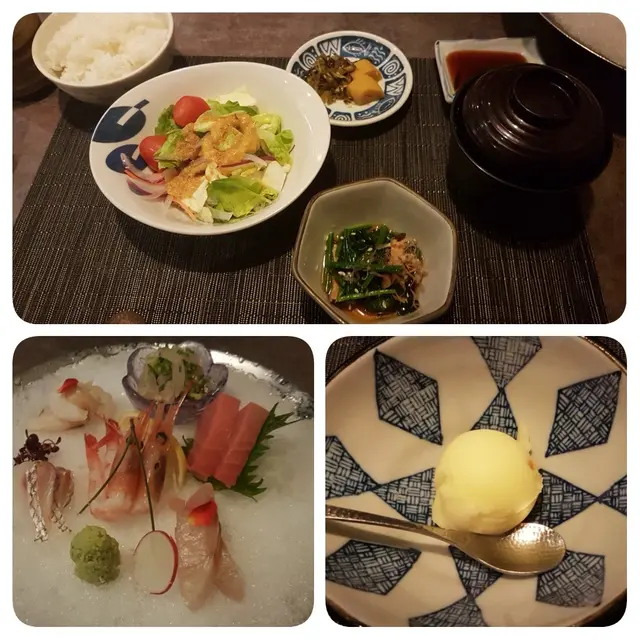 星期日12pm出尖沙咀食個日式 lunch set, 我們係第一枱客,叫左sashimi set + deluxe sushi set.個刺身碗好大好多❄啊,刺身有6款,當中得3種🐟🐟🐟,🦐,🐙和🐚,份量同個碗比, 相形見絀😕。Well, 食物重質, 不求量。😶 係鮮,但$250, 👉👈又好似少左d,而且那2件鮪,祇是赤身maguro 。原本要8件的sushi set, 下單時,服務員話10件有 Toro, 咁就deluex, 都係$250, 但😅要食10嚿飯🍙。明明個set話tuna roll+10嚿🍣,🤔多左1件?! 當中有8件是🐟,🐙,海膽和玉子。😲 sushi 完勝 sashimi。埋單時🤑, 突然話畀我哋聽有9折, 變相慳咗個加一🤗。…查看更多