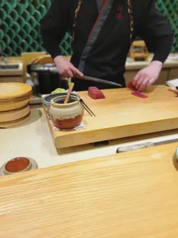 今次同friend去咗尖沙咀一間好有feel嘅日式餐廳,環境乾淨又舒服,服務員態度一流,仲好有耐性同我地介紹菜品。秋刀魚刺身配薑蔥油汁秋刀魚刺身好肥美,油脂感十足,入口即化,簡直係刺身控嘅心頭好!薑蔥油汁調得妙,薑蔥嘅辛香同油嘅甘香完美融合,唔會太濃,仲帶出秋刀魚嘅鮮甜味,食完真係回味無窮。吞拿魚絞肉配大蔥吞拿魚絞肉口感好細膩,配上大蔥嘅辛香,層次感好豐富。魚嘅鮮味濃郁,大蔥點綴得恰到好處,清爽得來又唔單調,絕對係輕盈口感嘅好選擇。深海池魚壽司魚肉好脆身,油脂分佈均勻,每啖都有甘香嘅油脂味。醋飯嘅酸味同魚肉嘅甜美好夾,口感層次豐富,食完真想再encore。福岡縣生蠔配啫喱生蠔好新鮮,入口有濃郁嘅海水鹹香,配上透明嘅啫喱,清新嘅口感同生蠔嘅滑嫩好match。啫喱質地輕盈,食落完全唔會覺得膩,令人想一試再試。車海老壽司車海老壽司彈牙爽口,蝦肉鮮甜,帶點海洋氣息。醋飯嘅酸度同蝦嘅鮮味好match,簡單但好滿足。黑睦魚壽司魚肉肥美,帶點燒烤香氣,油脂感同燒味好夾,入口真是一個享受。飯團嘅緊實度同魚肉好配合,食得出主廚嘅用心。最後上嘅抹茶奶凍,簡直係「拯救味蕾」嘅存在!抹茶味超濃郁,係那種正統嘅日式抹茶香,唔會有澀味,甜度亦都岩岩好,唔會太甜膩;奶凍做得好嫩滑,入口即化,餘韻有淡淡抹茶香呢間尖沙咀嘅日式餐廳真是一個寶藏地!壽司款款都好新鮮,配搭同口感都好有心思,尤其是北海道白海膽同抹茶奶凍,簡直係令人一試難忘。環境同服務都好有質素,係一個適合同朋友一齊chill嘅地方,推介給鍾意日式料理嘅你!…查看更多