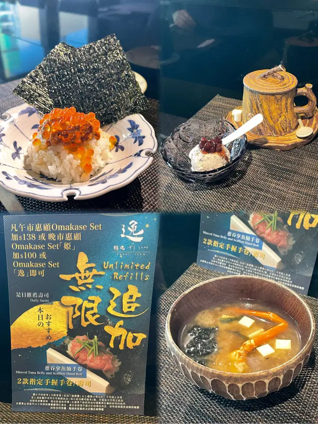 鮨逸 (銅鑼灣) 網上訂座享低至85折優惠兼賺Rice Dollars 網址: https://s.openrice.com/QrbS06eWA00 地址: 香港銅鑼灣駱克道487-489號駱克駅27樓 電話: +852 55480561