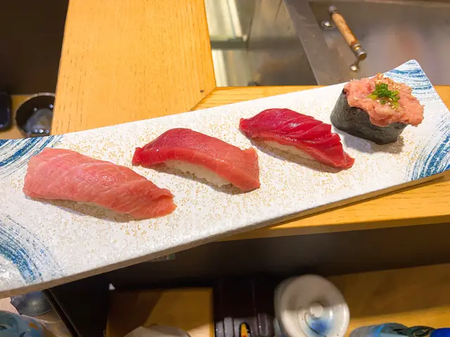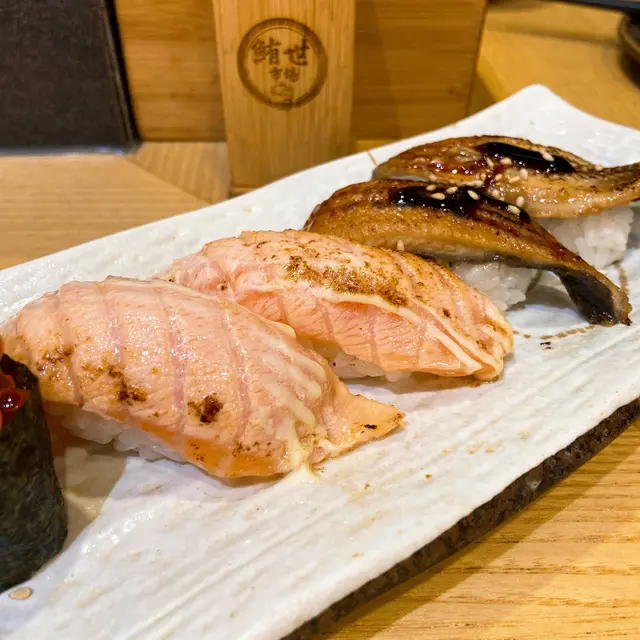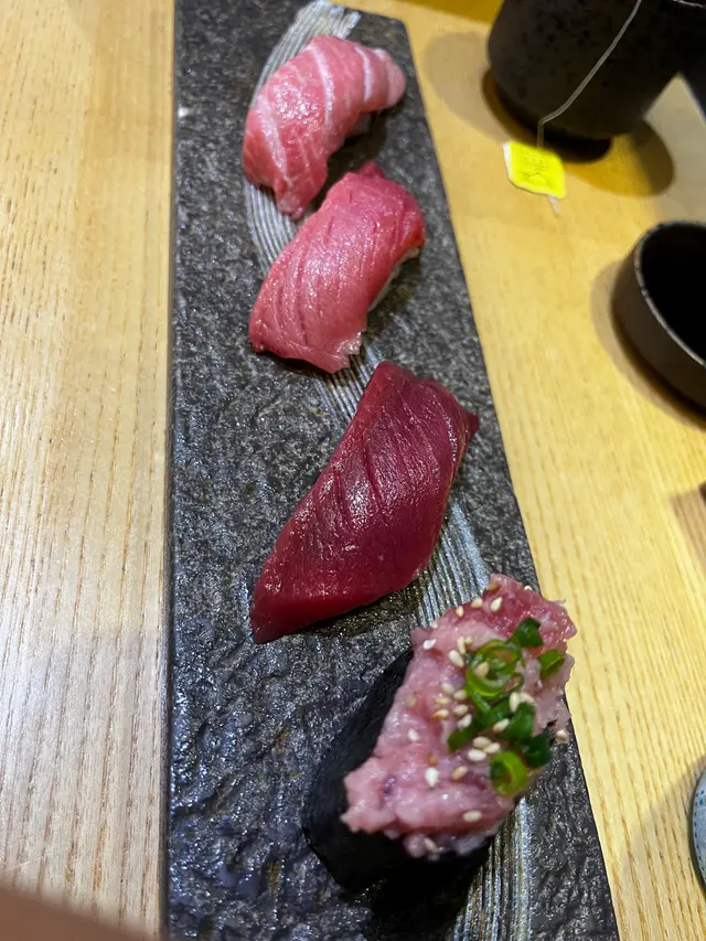 TKO gateway最近愈開愈多餐廳~而且間間都有好多人流🤤行到最入有一間隱世壽司店,座位唔算多,但每個位都可以望住師傅整壽司🍣-我覺得壽司嘅種類唔多又唔算少,反而可以更專注整好每一款壽司🍣🤤-1.特選本鮪壽司盛 $125一共有4件,由右至左,係分別由比較瘦至比較肥😋值得一讚喺呢度嘅壽司飯握得好好,唔會太實又唔會太散,夾起都唔會散👍吞拿魚蓉入口即溶,大本鮪魚腩好肥美😆-2.火炙三文魚腩壽司$18、火炙左口魚裙邊壽司$13、火炙帆立貝壽司$18、特上海膽軍艦$38火炙系列燒得啱啱好😋有少少嘅焦香,又唔會令魚生太熟❤️三文腩比到驚喜,魚油好重💕海膽好大舊,幾鮮甜,冇怪味🤤-3.磯煮鮑魚刺身$38、藍鰭中吞拿魚腩刺身 $72磯煮鮑魚好淋,用醬汁及昆布慢火去炆,令到鮑魚嘅肉質即可以保持鮮嫩彈牙,又可以食到濃郁的湯汁👍藍鰭中吞拿魚腩,相對上冇咁肥,唔會覺得好漏😉-4.火炙鵝肝壽司 $38呢個真心好食❤️火炙完嘅鵝肝流哂油🤤好香口,而且比想像中大舊💕-5.海膽手卷 $48手卷由頭食到尾都有海膽👍唔會食到底得翻啲飯😆紫菜好脆😋-6.波子汽水 $18係童年回憶❤️估唔到波子汽水同壽司又幾match😋查看更多