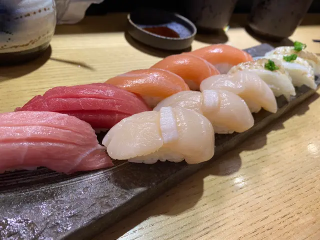 之前食過外賣 今次終於有機會堂食 因為佢座位唔多 所以要早啲嚟食 如果唔係就有排排隊 食物質素高 而且價錢唔貴 我哋大吃特吃 都只係六百幾蚊。象拔蚌以及赤貝壽司,新鮮爽甜。左口魚裙邊但有少少油份,口感又肥美又爽口。火炙灸左口魚,炙燒之後油脂逼出,甘甜濃郁,入口即溶。藍鰭鯨大吞拿魚腩壽司,我覺得比起其他之前食過嘅更加好食,中吞拿魚腩肥美可口,魚油比例剛剛好,有入口即溶嘅感覺。特大牡丹蝦壽司,上面有些香蔥以及蝦膏,增添整個味道的層次。蝦肉爽口鮮味,大大隻,吃一口10分滿足。查看更多
