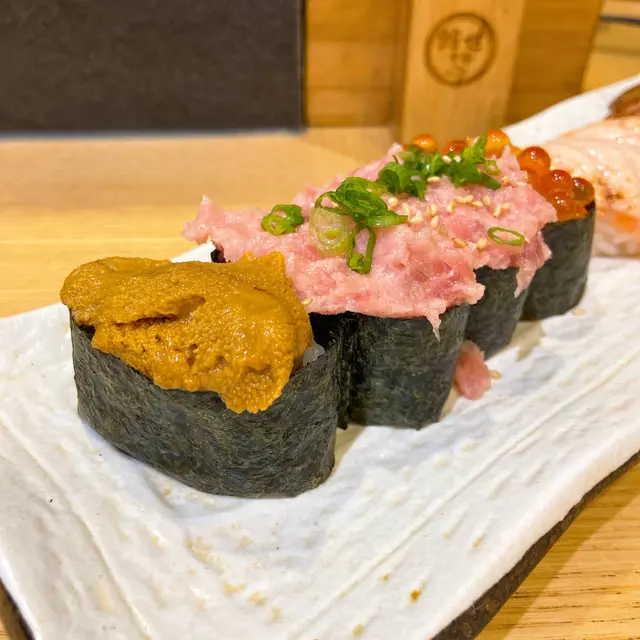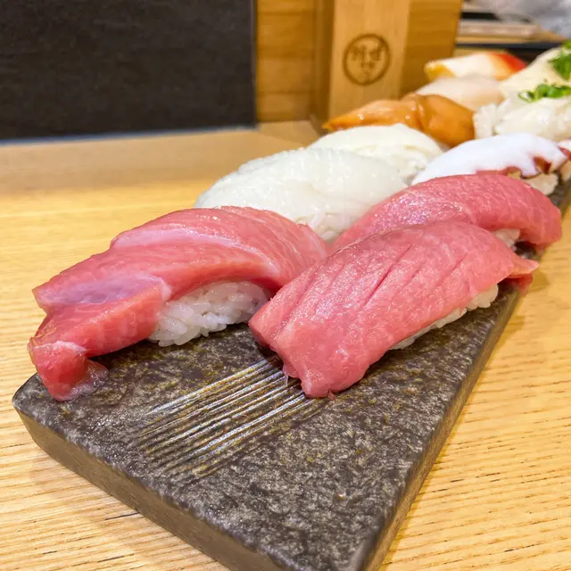 第一次食鮪世市場,因貌次次去到都好多人要排隊,加上店舖座位唔多,所以每次都放棄。今次有住附近既朋友去拎定位,所以終於有機會食到啦~🔶特上海膽壽司 $38:超級鮮甜,唔會有腥臭味,呢個價錢無投訴而且覺得好高質。🔶火炙左口魚裙邊壽司: 魚油豐富,火炙後肉質好軟滑而且有魚香,入口即溶。 🔶左口魚裙邊壽司: 相比肉質會較為爽口,但慢慢嘴嚼就會有左口魚香氣同魚油滲透出來。🔶藍鰭大吞拿魚腩 $48:大拖羅的油脂真係超級豐富,好似入口即溶咁,鮮甜好味好滿足。🔶藍鰭中吞拿魚腩 $35:相比大拖羅油脂會比較少,但依然好豐富,以價錢計我會覺得中拖羅性價比較高。🔶蔥吞拿魚腩軍艦 $24:油脂較少一款,但包住既紫菜香味又令到件壽司另有一番風味。如果鍾意吞拿,佢地一款可以一次過試晒4款吞拿魚的壽司,可以一次過試晒和比較四種油脂部位。🔶特大牡丹蝦壽司 $55: 蝦夠大只, 好有質感, 味好濃郁, 味鮮美.🔶火炙三文魚壽司 $18(2件): 好抵食!三文魚火炙好有油香。 🔶特上三文魚籽軍艦 $24:鹹度岩岩好,有時食三文魚籽會過鹹,呢件唔會。🔶三文魚刺身 $25 (二切):厚切肥美,呢個價錢無得輸。兩個人食到飽一飽又刺身壽司,完全無就住叫都只係六百幾,絕對比想像中平。整體壽司價格親民,質素性價比好高,難怪每次都要排長龍。有機會排唔到隊都要外賣番屋企食。查看更多