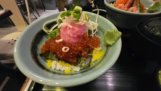 今日行左過黎旺角東呢邊整野,見到有間日式小店,價錢都幾抵食,一於試下佢首先就叫咗個五色丼飯,裡面有三文魚、甜蝦、蟹籽、北寄貝同油甘魚,食得出刺身都好新鮮,而且個份量都真係幾多,三文魚好鮮嫩,甜蝦滑口,蟹籽卜卜脆,北寄貝嘅口感好好,油甘魚就一D都唔腥,好有魚味,刺身既質素好好另外仲叫咗個日式海鮮鍋,鍋入面唔同既海鮮,有青口,蠔,帆立貝,蝦等等,湯底清淡得黎好鮮味,跟左個烏冬放埋落去一齊食,好彈牙,好好食然後我地食完之後再追加左D刺身同埋壽司叫左五色刺身,芥辣八爪魚,火炙鰻魚壽司同埋八爪魚壽司五色刺身入面有三文魚腩、八爪魚、油甘魚、甜蝦同帶子,呢到既刺身質素真係好好,食落好新鮮好好味,而且份量都真係多,每一塊魚都係厚切大大塊,好抵食芥辣八爪魚個調味好好,有芥辣味得黎唔會好嗆鼻,而且好開胃火炙鰻魚壽司,鰻魚炙得香噴噴,外面微焦,內裡滑嫩,配埋鰻魚汁,好好味! 另外八爪魚壽司都唔錯,食得\好滿足整體來講,呢度真係比到驚喜我,雖然係小店,但係刺身都新鮮又好味,而且價錢好抵食,真心推薦大家黎試試!…查看更多