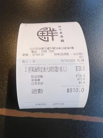 尖沙咀高質海鮮性價比爆燈 ❤️368新鮮海鮮超豐富 + 任食火鍋配料無限添加🍹飲品任飲😍蒸活海鮮食到夠 🦀 海鮮控必去 🔥 鮮活海鮮拼盤打卡必去📸高質火鍋美食抵食攻略海鮮控站出嚟!🥳 尖沙咀加拿芬廣場有間鮮味蒸滾鍋,真係新鮮到爆,性價比又超高~每次嚟都feel到心情chill翻晒,環境明亮又乾淨,食物質素又高又好抵,所以人氣超旺,大家記得要提前訂位呀!仲有室外位置供大家睇風景。更有VIP 房可以開P夠新鮮清蒸,原汁原味,食出海鮮味😍推介point💯 - 海鮮選擇有齊龍蝦、鮑魚、肉蟹、大蟶子,每樣都係活生生游水見得人👀,啲海鮮真係新鮮到冇得輸! - 海鮮套餐超足料,$368已經可以食到新鮮又豐富嘅海鮮,火鍋配料任加,飲品任飲,火力全開食到你大滿足~今日套餐內每位包括🥰😍養生滋補燉湯,勁養顏。龍蝦半隻,超新鮮,會游水活海貝盛盤,每口都係鮮蜆肉味今日揀左以下自選海鮮4款鮮活鮑魚1隻 ,仲加了蟲草花同薑絲,陳皮蒸😋鮮龍躉件2件,夠厚肉,夠實又鮮,還加了d 胡椒蒸生猛肉蟹 ,超鮮蟹味,多膏,好味都爆。活大蟶子1隻,鮮,又大蟲草花蒸文昌雞,超滑鮮嫩,juicy.梅菜蒸豬肉丸,好大粒,餡有少少馬蹄碎,有口感,有創意。自家製鮮蝦丸,彈牙,新鮮滿口鮮蝦味今日揀咗芫荽皮蛋湯底做火鍋,超足料。美國牛頸脊一碟,雪花分怖平均,鮮紅色超吸引,每口都係牛肉味道南瓜鮮排骨粥 每口都係精華,吸收晒所有海鮮同文昌雞肉的精華,粥底超軟綿,超鮮味。養顏紅棗糕記住仲有火鍋配料任加,飲品任飲- 養生燉湯、色香味俱全仲好滋補,啱晒鍾意健康嘅朋友,大推蟲草花蒸文昌雞、梅菜蒸豬肉丸同自家製鮮蝦丸~推介:芫荽皮蛋湯底做火鍋,特別得嚟又夾!鍾意牛可揀美國牛頸脊,肉質嫩滑冇得輸🥩。收尾有南瓜鮮排骨粥同養顏紅棗糕,暖胃又養生~📸 即場影低相片打卡,海鮮拼盤新鮮亮相,啲肉類、丸類同小食全部都咁吸引!食咗一次,真係會諗緊下次幾時再去!想食新鮮海鮮又唔想破產?呢度就係天堂啦,快啲約埋朋友空肚去hea餐,包你食到笑出聲~…查看更多