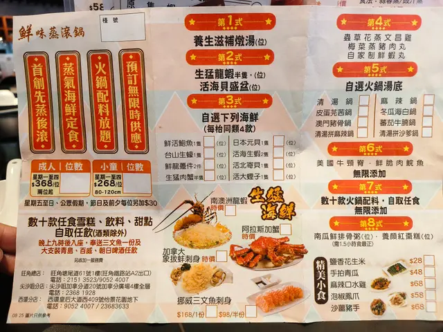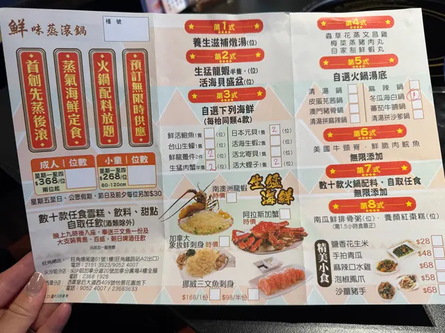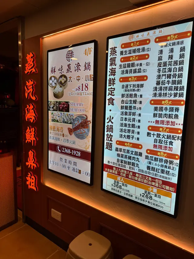 尖沙咀高質海鮮性價比爆燈 ❤️368新鮮海鮮超豐富 + 任食火鍋配料無限添加🍹飲品任飲😍蒸活海鮮食到夠 🦀 海鮮控必去 🔥 鮮活海鮮拼盤打卡必去📸高質火鍋美食抵食攻略海鮮控站出嚟!🥳 尖沙咀加拿芬廣場有間鮮味蒸滾鍋,真係新鮮到爆,性價比又超高~每次嚟都feel到心情chill翻晒,環境明亮又乾淨,食物質素又高又好抵,所以人氣超旺,大家記得要提前訂位呀!仲有室外位置供大家睇風景。更有VIP 房可以開P夠新鮮清蒸,原汁原味,食出海鮮味😍推介point💯 - 海鮮選擇有齊龍蝦、鮑魚、肉蟹、大蟶子,每樣都係活生生游水見得人👀,啲海鮮真係新鮮到冇得輸! - 海鮮套餐超足料,$368已經可以食到新鮮又豐富嘅海鮮,火鍋配料任加,飲品任飲,火力全開食到你大滿足~今日套餐內每位包括🥰😍養生滋補燉湯,勁養顏。龍蝦半隻,超新鮮,會游水活海貝盛盤,每口都係鮮蜆肉味今日揀左以下自選海鮮4款鮮活鮑魚1隻 ,仲加了蟲草花同薑絲,陳皮蒸😋鮮龍躉件2件,夠厚肉,夠實又鮮,還加了d 胡椒蒸生猛肉蟹 ,超鮮蟹味,多膏,好味都爆。活大蟶子1隻,鮮,又大蟲草花蒸文昌雞,超滑鮮嫩,juicy.梅菜蒸豬肉丸,好大粒,餡有少少馬蹄碎,有口感,有創意。自家製鮮蝦丸,彈牙,新鮮滿口鮮蝦味今日揀咗芫荽皮蛋湯底做火鍋,超足料。美國牛頸脊一碟,雪花分怖平均,鮮紅色超吸引,每口都係牛肉味道南瓜鮮排骨粥 每口都係精華,吸收晒所有海鮮同文昌雞肉的精華,粥底超軟綿,超鮮味。養顏紅棗糕記住仲有火鍋配料任加,飲品任飲- 養生燉湯、色香味俱全仲好滋補,啱晒鍾意健康嘅朋友,大推蟲草花蒸文昌雞、梅菜蒸豬肉丸同自家製鮮蝦丸~推介:芫荽皮蛋湯底做火鍋,特別得嚟又夾!鍾意牛可揀美國牛頸脊,肉質嫩滑冇得輸🥩。收尾有南瓜鮮排骨粥同養顏紅棗糕,暖胃又養生~📸 即場影低相片打卡,海鮮拼盤新鮮亮相,啲肉類、丸類同小食全部都咁吸引!食咗一次,真係會諗緊下次幾時再去!想食新鮮海鮮又唔想破產?呢度就係天堂啦,快啲約埋朋友空肚去hea餐,包你食到笑出聲~…查看更多