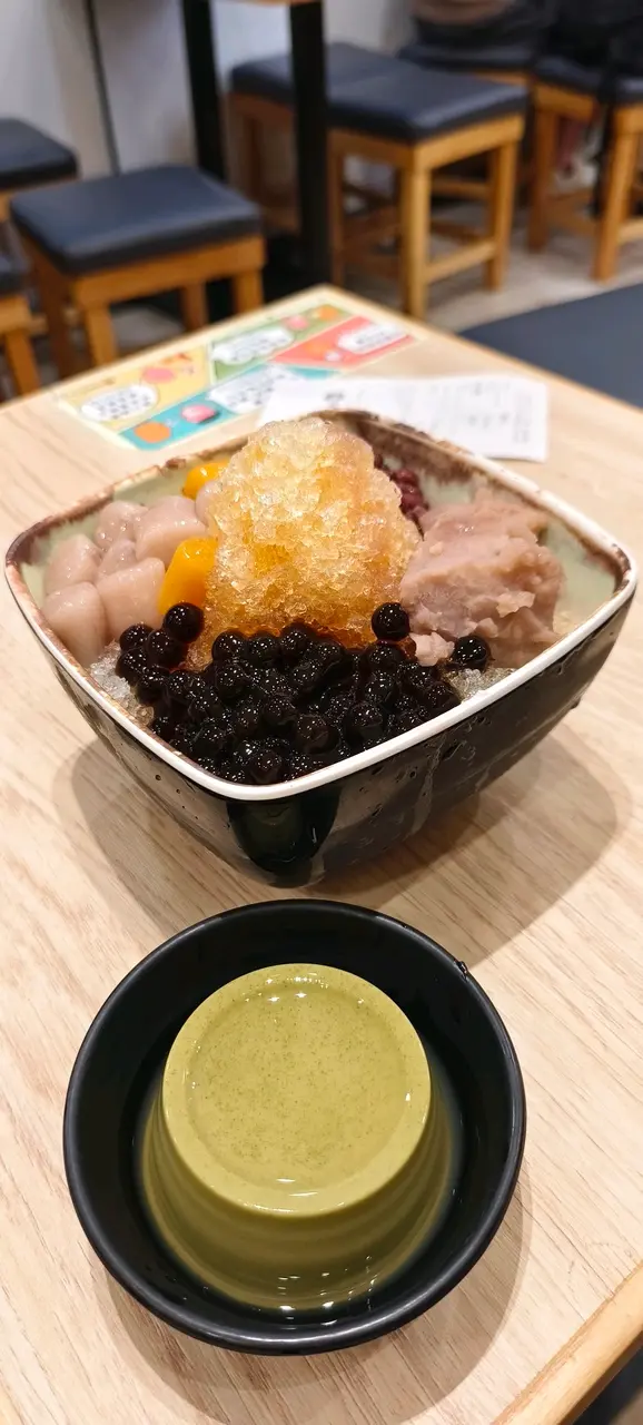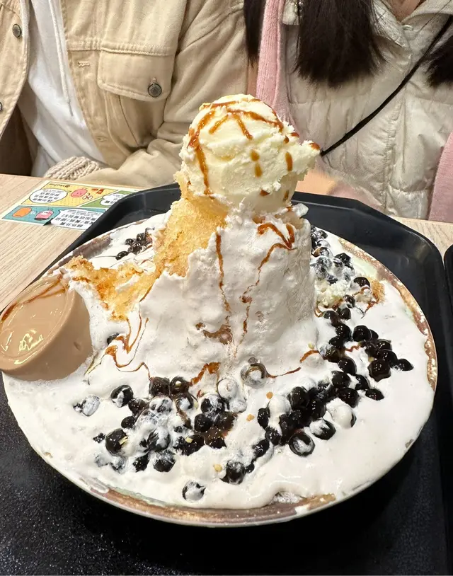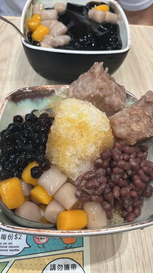 呢款甜品真係令人眼前一亮!成個甜品睇落去好豐富,好似一座小山咁。上面頂住個香草雪糕,雪糕質地綿密,入口即化,仲有少少焦糖醬淋落去,增添咗風味。雪糕下面係層層疊疊嘅碎冰,碎冰好細膩,食落好清爽。周圍仲圍繞住好多配料,有彈牙嘅芋圓、煙韌嘅黑糖凍,仲有香甜嘅芒果粒。每種配料都有自己獨特嘅口感同味道,同碎冰同雪糕一齊食,真係口感豐富。食呢款甜品嘅時候,真係好滿足,每一口都能感受到不同配料嘅碰撞。價錢又唔貴,份量又夠,真係超值!如果平時鍾意食甜品嘅朋友,一定唔好錯過呢款,真係會令人食咗又想再食。查看更多