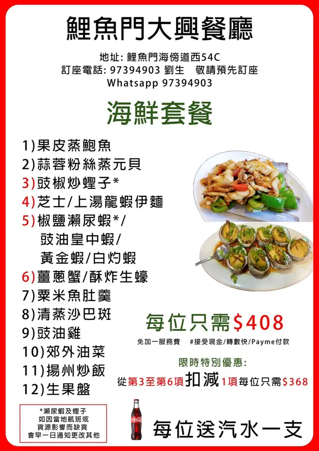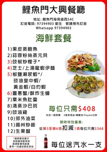 朋友推介這間海鮮餐廳很久了,原價$408免加一(現在只需$388)便能吃到海鮮套餐,有龍蝦有鮑魚有蟶子有扇貝等等,性價比相當高,於是今天晚上便來吃晚飯。上湯龍蝦伊麵:龍蝦的份量十分多,雖然味道不夠鮮甜,但是肉質都算爽口彈牙,至於伊麵的味道都算不錯,重點是份量夠多,一定飽肚。酥炸生蠔:生蠔是即叫即炸的,外皮十分香脆可口,而內裡的蠔肉則相當飽滿,鮮甜美味,每一口都十分滿足。豉椒炒蟶子:蟶子的熟度煮得剛剛好,口感完全不堅韌,非常爽口,豉椒的味道亦十分濃郁,是我吃過最出色的炒蟶子之一。果皮蒸鮑魚:鮑魚大大隻,口感不會太堅韌,每一口都很彈牙,美中不足是鮮味比較淡了一些。蒜蓉粉絲蒸扇貝:這道菜式比較清淡,可能蒜蓉不夠濃味,所以粉絲和扇貝都沒有什麼味道,味道只是一般。清蒸沙巴斑:全場第二出色的食物便是這條魚,雖然十分大條,但是魚肉的質感依然十分嫩滑可口,鮮美多汁,每一口都相當有滋有味,令人念念不忘。椒鹽瀨尿蝦:本身我最期待這道菜式,可惜味道卻有點讓人失望,椒鹽的調味是不錯的,可是瀨尿蝦的肉質太過軟爛,而且缺乏鮮味,味道只是一般而已。揚州炒飯:雖然配料算多,可惜炒飯質感不夠乾身,口感有點濕潤,完全不好吃。另外套餐還包括了魚肚羹、豉油雞和青菜,全部都是正常味道。價錢方面,海鮮套餐現在有優惠價,只需$388免加一。總結來說,以$388/位的價錢來說,可以吃到這麼多海鮮,性價比真的相當高,至於味道雖然未算很出色,但以這個價錢來說完全可以接受,至少好吃過普通酒樓。…查看更多