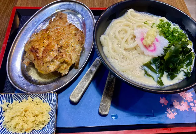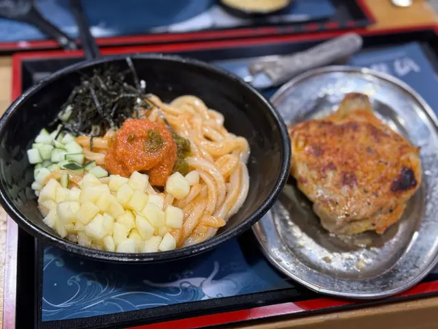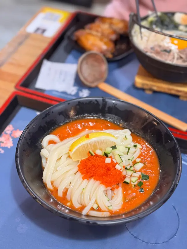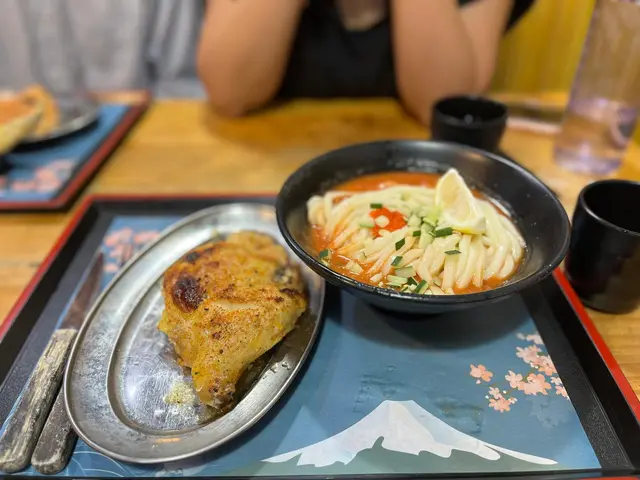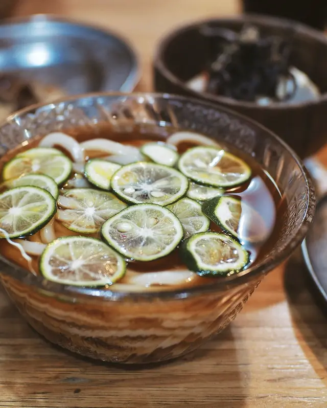 鰹烏冬夏日限定的 酢橘烏冬,選用來自日本德島的酢橘,有著青檸外觀但帶有西柚般的酸味。將酢橘薄片鋪滿在冷烏冬上,加入冰涼的冷湯汁,視覺上已經充滿夏季清新氣息。將烏冬與酢橘薄片一同享用,煙韌彈牙,酸味適中,非常開胃。再加點另一招牌菜骨付雞,香料味濃郁,外皮酥脆,雞肉鮮嫩多汁,讓人滿足。Katsuo Udon’s seasonal offering Sudachi Udon, showcases the unique flavors of sudachi citrus with thin slices over chilled udon, served with a light, cold broth that embodies the freshness of summer. Complement this with their chicken-on-the-bone, boasting a crispy exterior and succulent, flavorful meat - an irresistible pairing for a satisfying meal.…查看更多