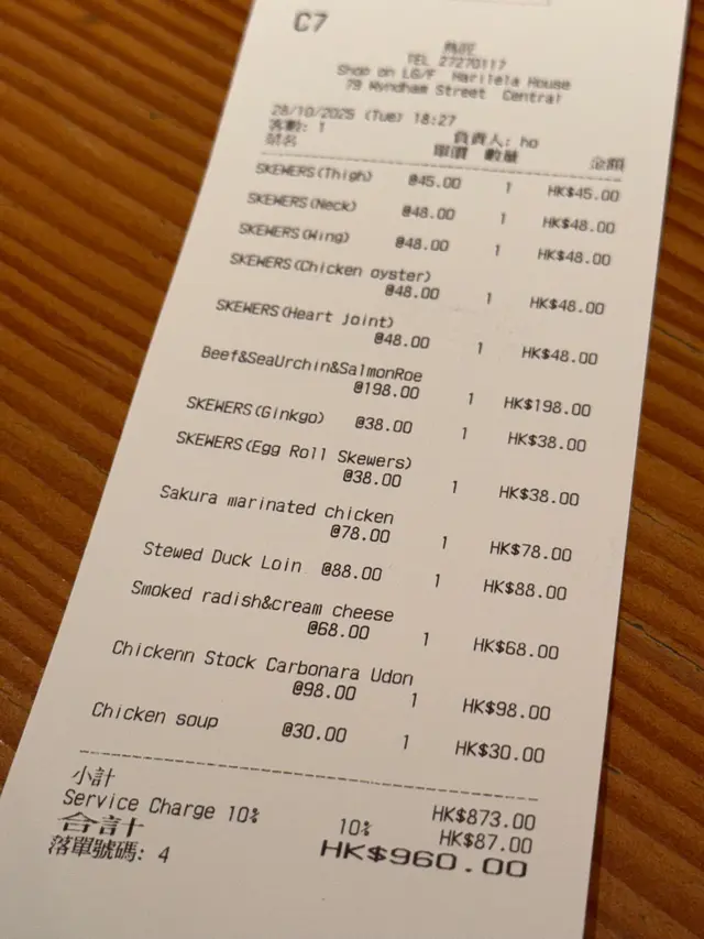 中環人氣燒鳥店✨堅持用備長炭 ,炭火香氣滿滿~開放式廚房,師傅功架十足食到各款燒鳥稀有部位✨Thigh $45 (推薦😍雞腿肉外層焦脆,肉質結實✨Neck $45 (推薦😍雞頸肉好滑嫩!✨Wing $48(推薦😍已經去咗骨嘅雞翼皮脆肉嫩,啖啖肉加埋雞皮既油香,好享受!✨Chicken Oyster $48 稀少部位,鮮嫩多汁形狀的確有啲似生蠔😆✨Heart Joiny $48 (推薦😍稀少部位,值得一試柔軟又帶點嚼勁既奇妙口感-✨牛肉雲丹 $198重點係海量海膽同三文魚籽✨銀杏 $38帶點鹹香點綴如再煙靭啲就更好✨Egg roll skewers $38吸收咗高湯嘅玉子,傳統日式味道✨Low cook chicken tender Sakura marinated $78 原來香港都食到雞刺身!有少少似食緊魚肉咁櫻花漬,調味輕盈,接近原味✨Smoked Radish & Cream Cheese $68奶香芝士包住爽脆蘿蔔奇妙口感,較濃味✨Stewed duck loin $88鴨胸同牛蒡絲,有黑椒作點綴-✨Chicken Soup $30唔會超級濃厚係飲得舒服,順口嘅雞湯熱辣辣,冬天飲暖入心✨Chicken Stock Carbonara Udon $98 蛋香濃郁,份量十足適合多人分享…查看更多