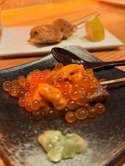 「鳥匠」顧名思義主打雞肉串燒兼具匠人精神的燒鳥店。專注燒鳥料理日藉燒鳥職人,對食材品質極致追求、精準燒烤技巧、對細節執著。嚴選高品質雞肉及稀少部位,並用備長木炭將食材美味發揮到極致。🌸雞胸肉の桜雞肉刺身喺香港餐廳比較少見,以慢煮形式至外層微熟,而中心部份是生,出奇地口感像魚生,質地嫩滑,桜花啫喱帶點清新,特調生葵少少攻鼻帶來刺激。🐔各款雞肉串燒,雞脾肉、雞翼,稀少部位,配搭不同醬汁襯托食材。職人以高水準技術炭火燒烤,不時傳來香味。雞肉帶有焦香,保留肉汁。免治雞肉串內有雞軟骨碎比例均勻,柔軟多汁。雞翼去骨啖啖肉,外脆內嫩。雞心邊爽脆感。雞橫膈膜肉質緊實。估唔到原來雞頸肉都咁好味。🐮A4和牛肉充滿油脂香,入口柔軟,加上海膽和三文魚籽帶來奢華感。🍜 鶏白湯うどん鶏白湯由雞肉熬煮已成白色濃湯,清爽唔油膩,配搭烏冬同蔬菜夠暖胃。🍨抹茶黑蜜きな粉アイス抹茶雪糕清香微甘,威化餅輕盈鬆脆,黑蜜帶出甜味嘅層次,清新又滿足。成晚坐喺bar枱望住職人弄串燒都係一種享受,細意品嚐每道串燒嘅味道。餐廳氛圍優雅又舒適,專業殷勤嘅服務也加不少分數,超讃的燒鳥店。…查看更多