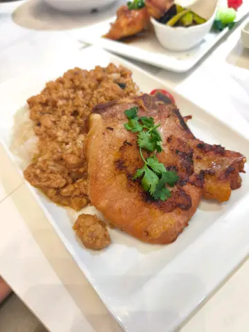 新開咗一排嘅上海嘢,觀望咗一段時間終於決定試下。入到去一坐低,staff就過黎話每人送一碗例湯,出乎意料地好味,好甜 唔似係味精湯,都唔算好油。menu超多嘢揀,睇睇下其實呢間都唔似上海嘢,似係咩都有嘅fushion多啲燒肉醬汁香蔥雞扒飯有包埋個冷盤 木耳伴青瓜。 雞扒煎得啱啱好,幾嫩,但稍嫌細塊。有燒肉汁可以撈飯食無咁dry,啲汁都唔算太鹹,配埋啲蔥係香嘅。冷盤嘅青瓜爽口,但我唔鍾意佢用隻醋太濃味,用返淡少少嘅醋會比較襯佢清新嘅味道。飲品方面,豆漿係杯上,唔係支裝,唔知係咪因為咁可以叫少甜。甜度啱啱好,又有豆香,呢個推。相較之下奶茶麻麻。另外仲叫咗上海金不换肉躁香煎豬扒飯,呢個豬扒比雞扒大塊,好juicy唔會話煎得太乾。肉躁俾得好大方,一定夠撈晒成個飯,金不换輕輕吊下味,唔會好搶,味道balance得幾好。另一大期待花雕醉雞 酒香撲鼻但唔會太嗆,啲雞好入味同好滑。天時暑熱食返啲冷盤cool down好正。上海粗炒有驚喜!本身一上枱見佢唔太上色,仲以為有啲不妙,但食落口又夠味喎,同出面連鎖嗰啲上海店比無咁油/重口味,感覺係健康ver之餘,應有嘅味都無少到,配料都唔少,對得住價錢。呢個性價比,再加埋啲staff都幾好招呼,有下次😻…查看更多